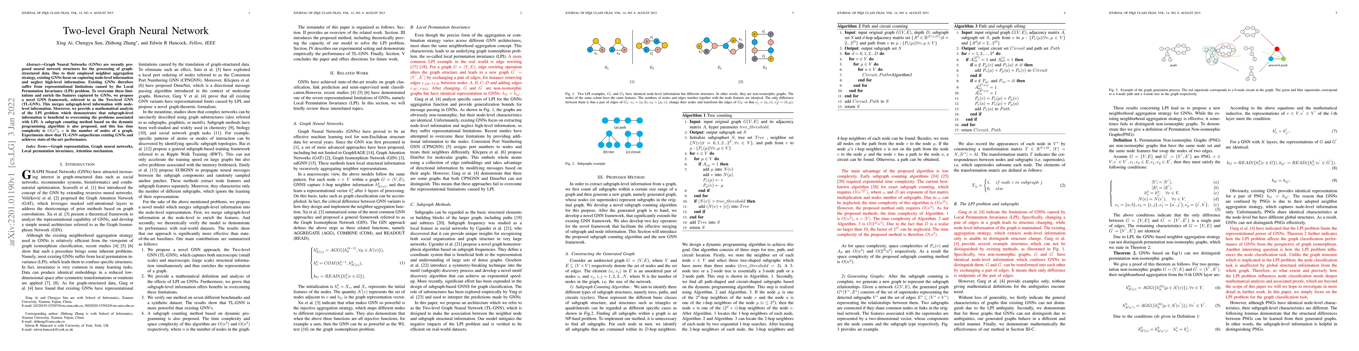 Graph Neural Networks (GNNs) are recently proposed neural network structures for the processing of graph-structured data. Due to their employed neighbor aggregation strategy, existing GNNs focus on capturing node-level information and neglect high-level information. Existing GNNs therefore suffer from representational limitations caused by the Local Permutation Invariance (LPI) problem. To overcome these limitations and enrich the features captured by GNNs, we propose a novel GNN framework, referred to as the Two-level GNN (TL-GNN). This merges subgraph-level information with node-level information. Moreover, we provide a mathematical analysis of the LPI problem which demonstrates that subgraph-level information is beneficial to overcoming the problems associated with LPI. A subgraph counting method based on the dynamic programming algorithm is also proposed, and this has time complexity is O(n^3), n is the number of nodes of a graph. Experiments show that TL-GNN outperforms existing GNNs and achieves state-of-the-art performance.