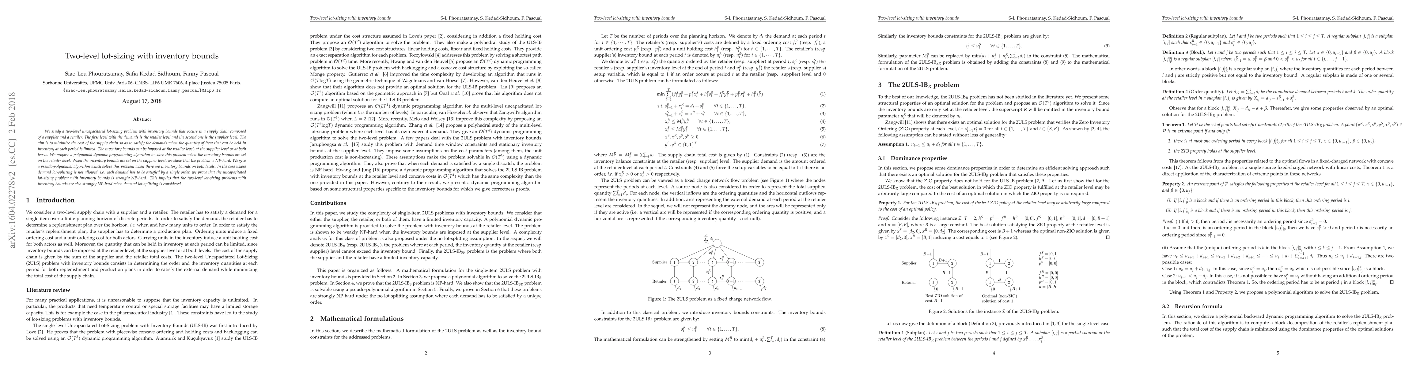 This paper investigates a two-level uncapacitated lot-sizing problem with inventory constraints in a supply chain, proposing dynamic programming and pseudo-polynomial algorithms for different scenarios. It establishes the NP-hardness of the problem when inventory bounds are at the supplier level.