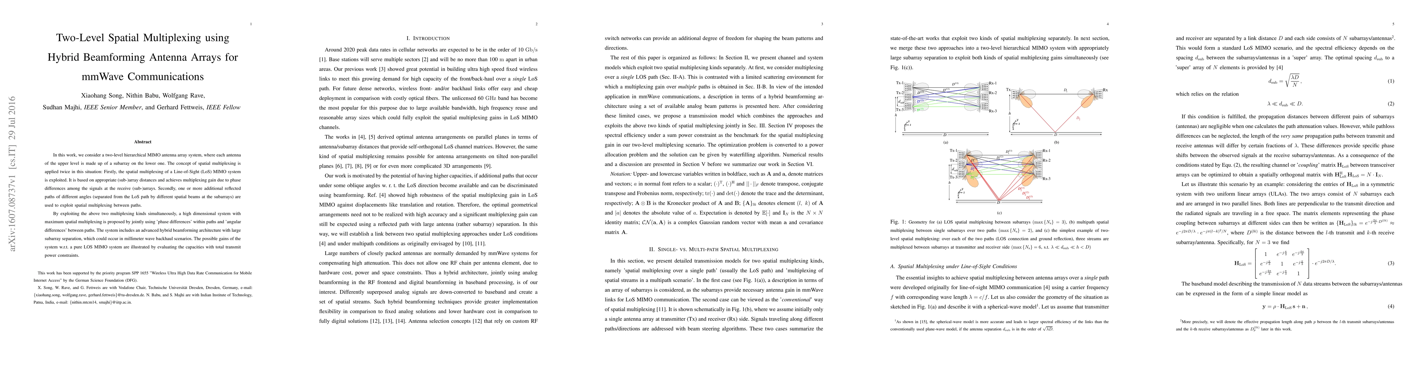 Researchers propose a two-level spatial multiplexing system that combines line-of-sight and reflected path signals to achieve higher dimensional systems with maximum spatial multiplexing, offering potential gains over traditional pure LOS MIMO systems.
