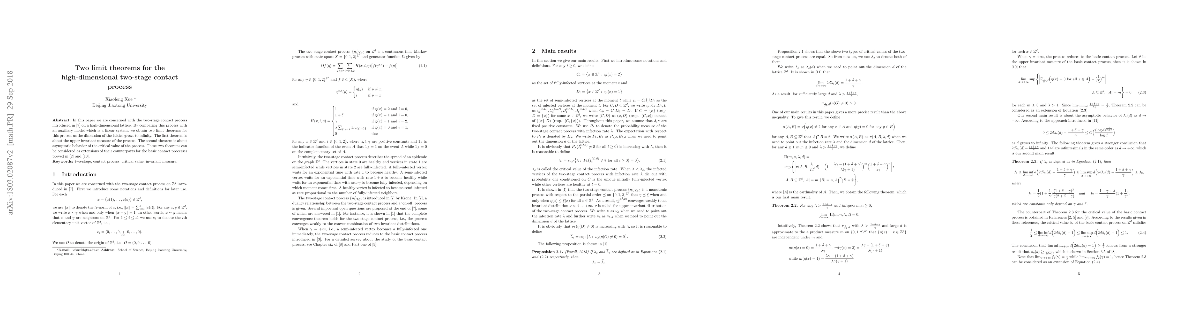 Researchers develop two limit theorems for a high-dimensional version of the contact process, improving understanding of its behavior as lattice size increases.
