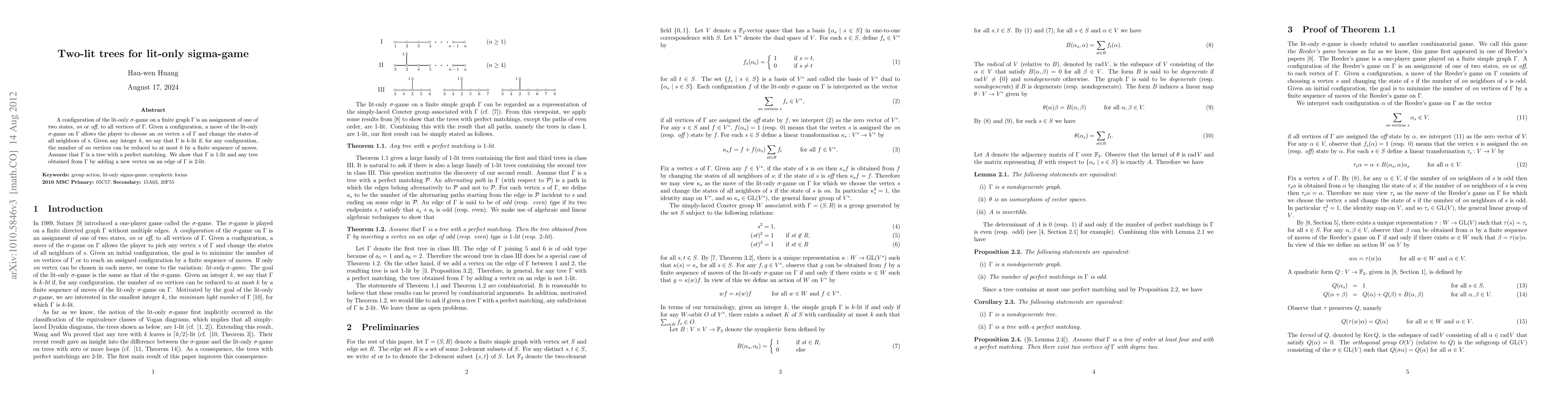 A tree with a perfect matching can be reduced to at most one lit vertex through a series of moves, while adding a new vertex makes it reducible to two.