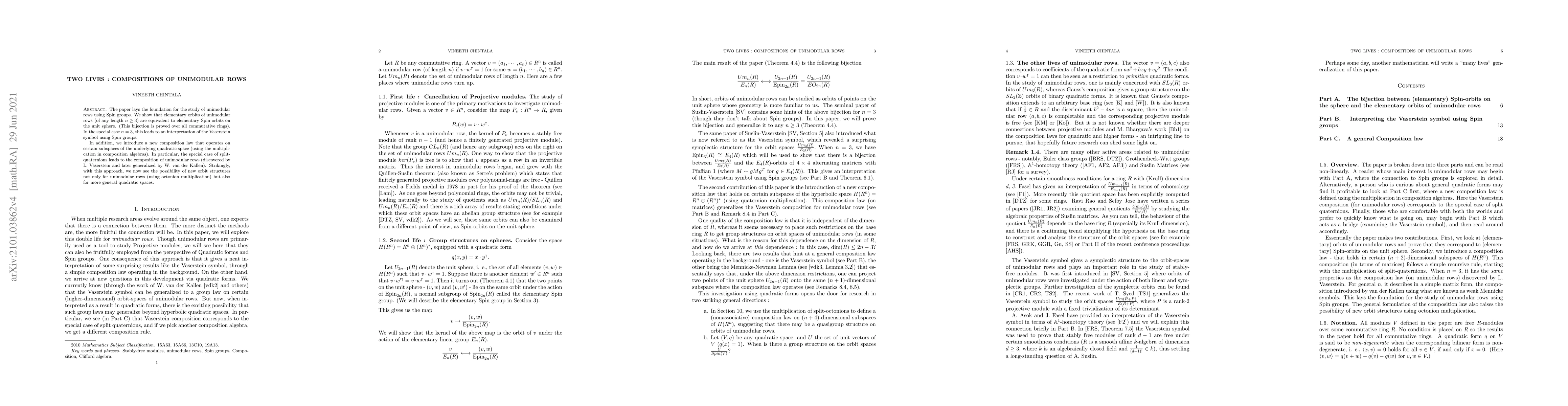 This paper establishes a connection between unimodular rows and Spin groups, showing that their elementary orbits correspond to Spin orbits on the unit sphere. It introduces a new composition law for certain subspaces in quadratic spaces, leading to new orbit structures for unimodular rows and general quadratic spaces, notably via octonion multiplication.