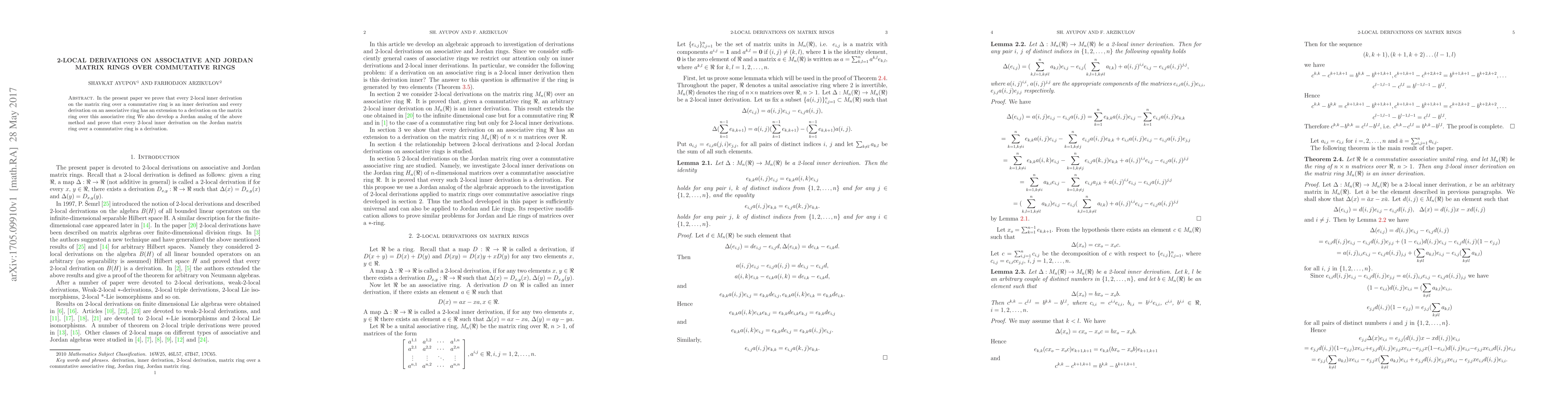 Summary: This paper proves that every 2-local inner derivation on matrix rings over commutative rings is an inner derivation and that derivations on associative rings extend to matrix rings. It also extends these results to Jordan matrix rings, showing that every 2-local inner derivation on such rings is a derivation.