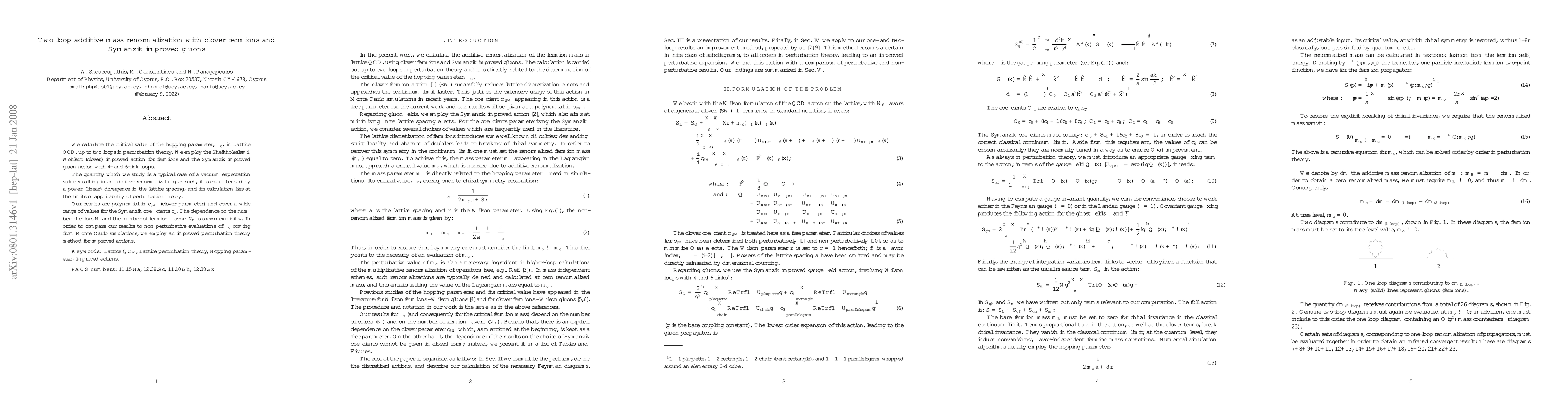 This paper calculates the critical hopping parameter $\kappa_c$ in Lattice QCD up to two-loop perturbation theory using clover fermions and Symanzik improved gluons. The study focuses on additive mass renormalization, revealing polynomial results in the clover parameter and explicit dependence on colors and flavors.