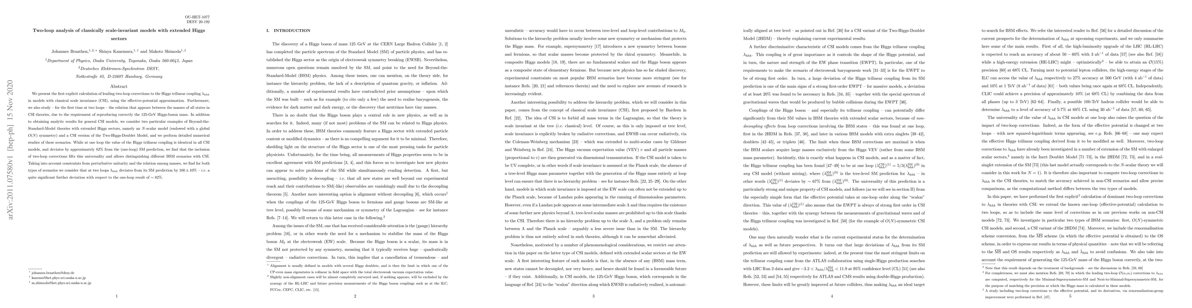 This paper calculates leading two-loop corrections to the Higgs trilinear coupling in classically scale-invariant models with extended Higgs sectors, revealing significant deviations from the Standard Model prediction. The study also explores the mass relations in these models and distinguishes different Beyond-the-Standard-Model scenarios through these corrections.