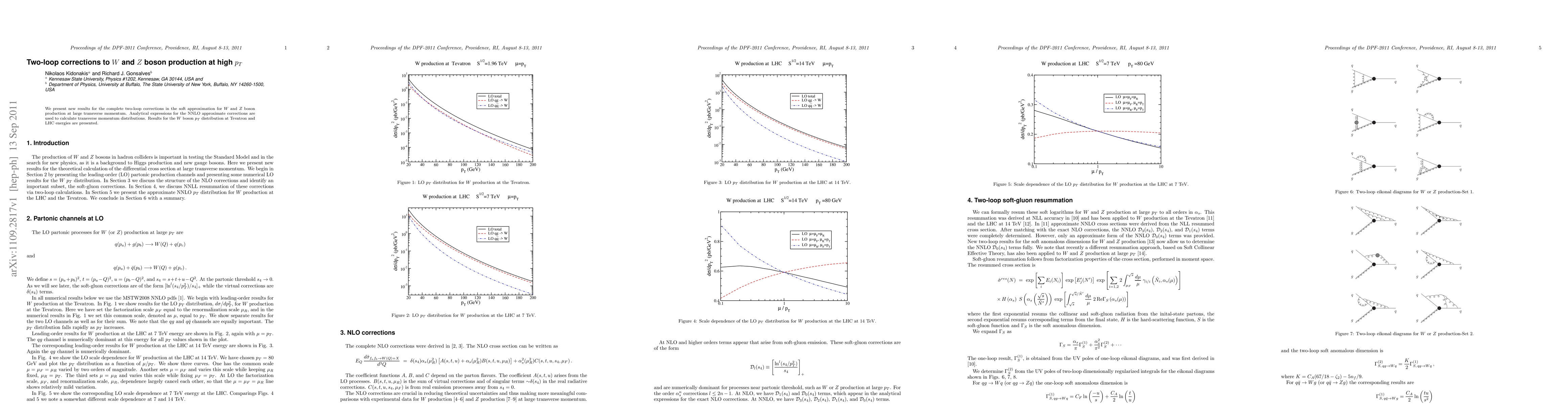 This paper provides complete two-loop corrections in the soft approximation for W and Z boson production at high transverse momentum, using analytical NNLO expressions to calculate these distributions. Results for W boson pT distributions at both Tevatron and LHC energies are presented.