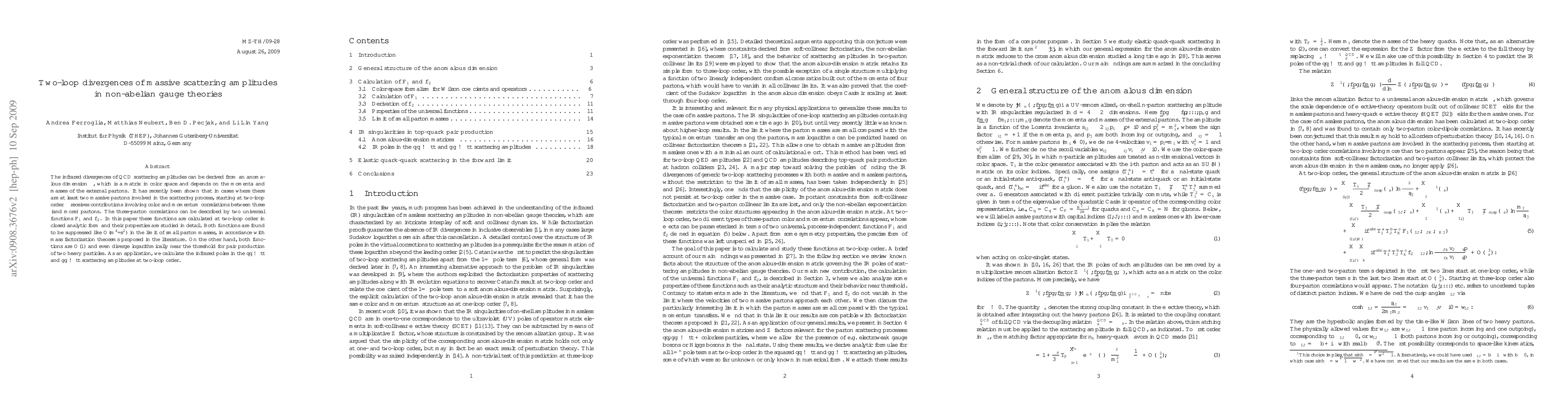The infrared divergences of QCD scattering amplitudes can be derived from an anomalous dimension \Gamma, which is a matrix in color space and depends on the momenta and masses of the external partons. It has recently been shown that in cases where there are at least two massive partons involved in the scattering process, starting at two-loop order \Gamma receives contributions involving color and momentum correlations between three (and more) partons. The three-parton correlations can be described by two universal functions F_1 and f_2. In this paper these functions are calculated at two-loop order in closed analytic form and their properties are studied in detail. Both functions are found to be suppressed like O(m^4/s^2) in the limit of small parton masses, in accordance with mass factorization theorems proposed in the literature. On the other hand, both functions are O(1) and even diverge logarithmically near the threshold for pair production of two heavy particles. As an application, we calculate the infrared poles in the q qbar --> t tbar and g g --> t tbar scattering amplitudes at two-loop order.