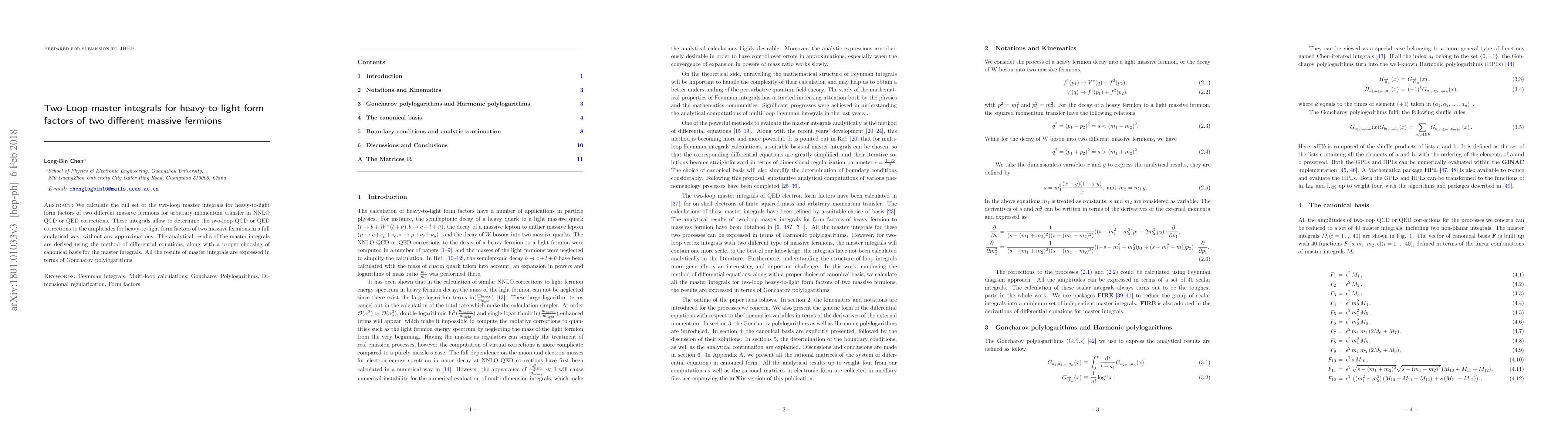 This paper calculates the complete set of two-loop master integrals for heavy-to-light form factors of two different massive fermions, enabling full analytical determination of NNLO QCD or QED corrections. The results are derived using differential equations and expressed in terms of Goncharov polylogarithms.