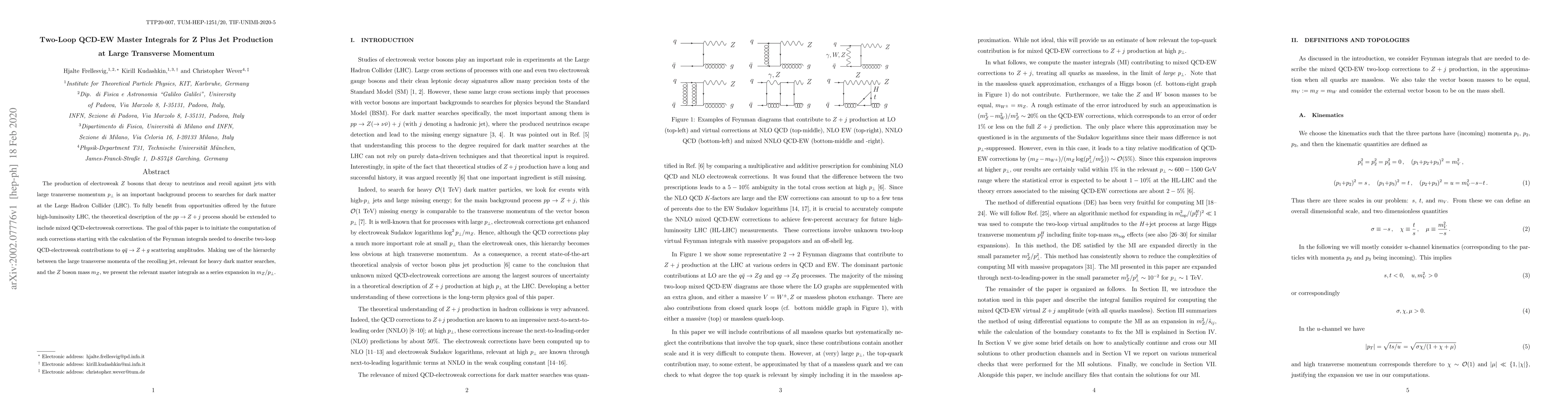 Researchers develop master integrals to calculate two-loop QCD-electroweak corrections for Z boson production with large transverse momentum at the LHC, crucial for dark matter searches.