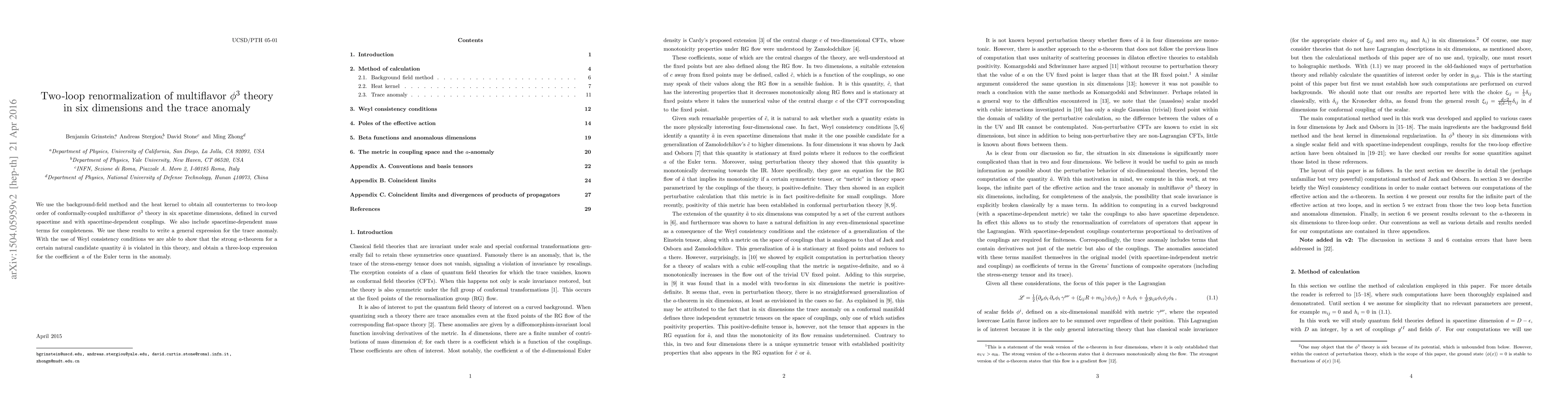 This paper calculates two-loop counterterms for multiflavor $\phi^3$ theory in six dimensions using the background-field method and heat kernel techniques. It reveals a violation of the strong $a$-theorem for a candidate quantity $\tilde{a}$ and provides a three-loop expression for the coefficient $a$ of the trace anomaly.