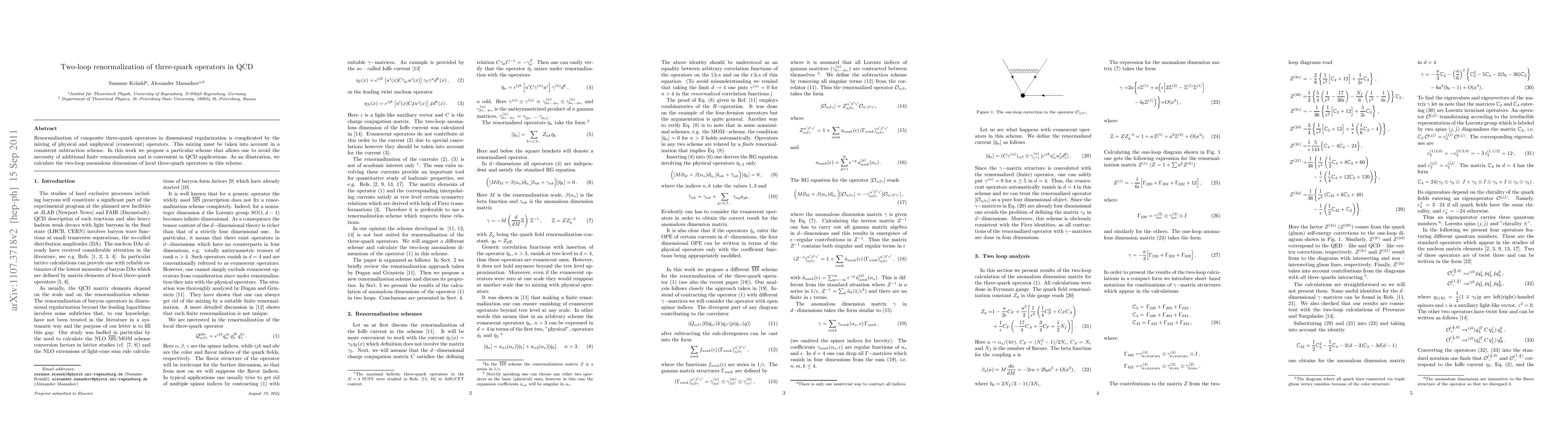 This paper proposes a renormalization scheme for three-quark operators in QCD that avoids additional finite renormalization and accounts for operator mixing in dimensional regularization. The authors calculate the two-loop anomalous dimensions of local three-quark operators to demonstrate the scheme's effectiveness.