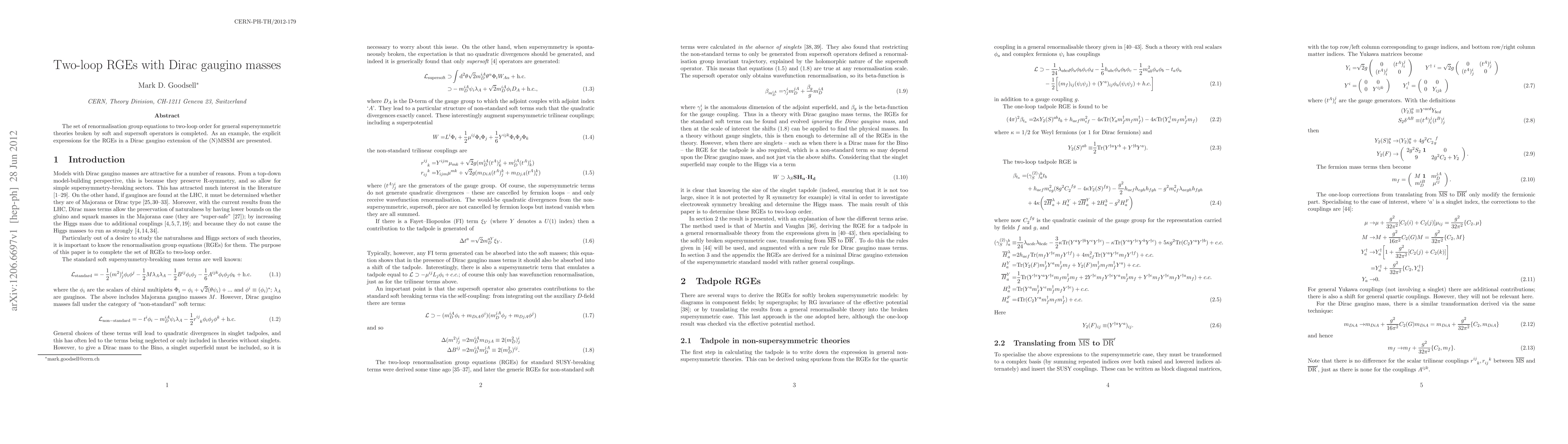 The set of renormalisation group equations to two loop order for general supersymmetric theories broken by soft and supersoft operators is completed. As an example, the explicit expressions for the RGEs in a Dirac gaugino extension of the (N)MSSM are presented.