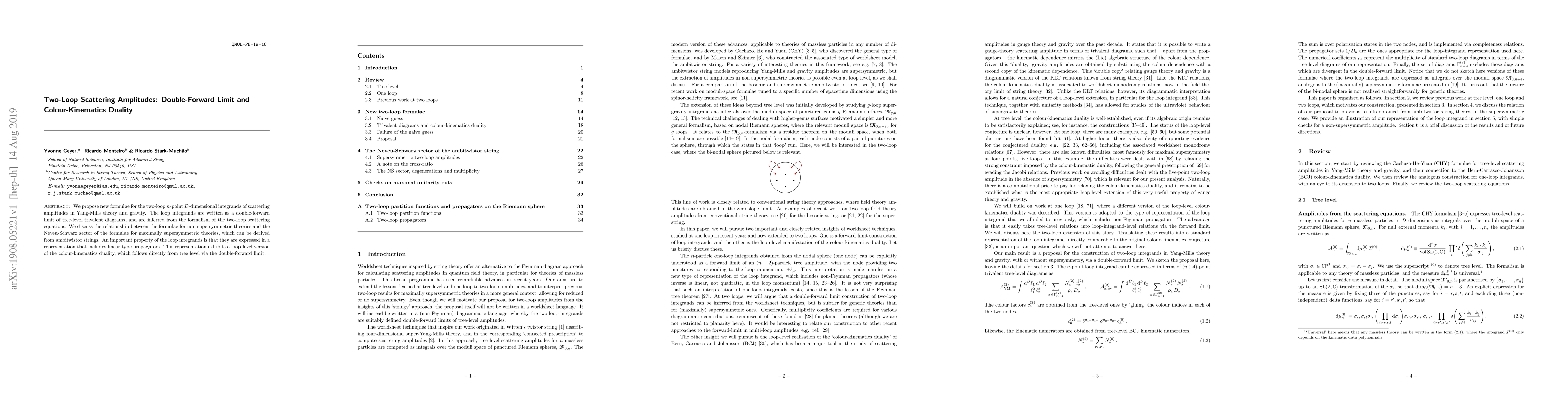 This paper proposes new formulae for two-loop scattering amplitudes in Yang-Mills theory and gravity, expressed as a double-forward limit of tree-level diagrams. It highlights a loop-level version of colour-kinematics duality and discusses its relationship with maximally supersymmetric theories derived from ambitwistor strings.