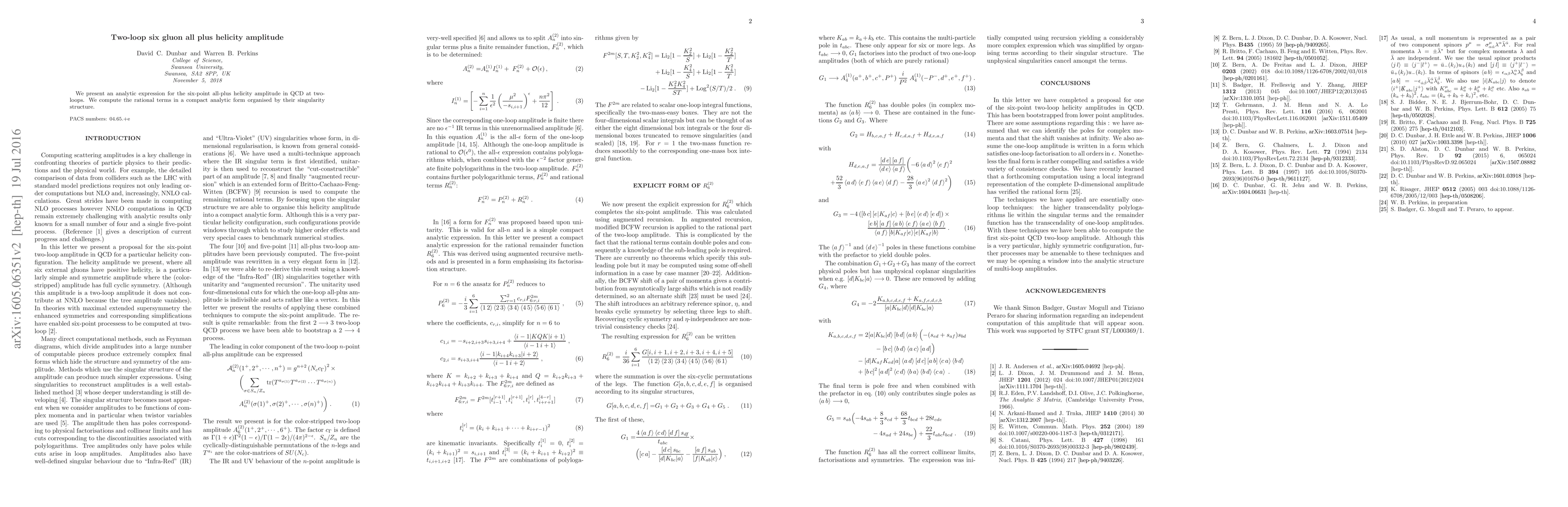 We present an analytic expression for the six-point all-plus helicity amplitude in QCD at two-loops. We compute the rational terms in a compact analytic form organised by their singularity structure.