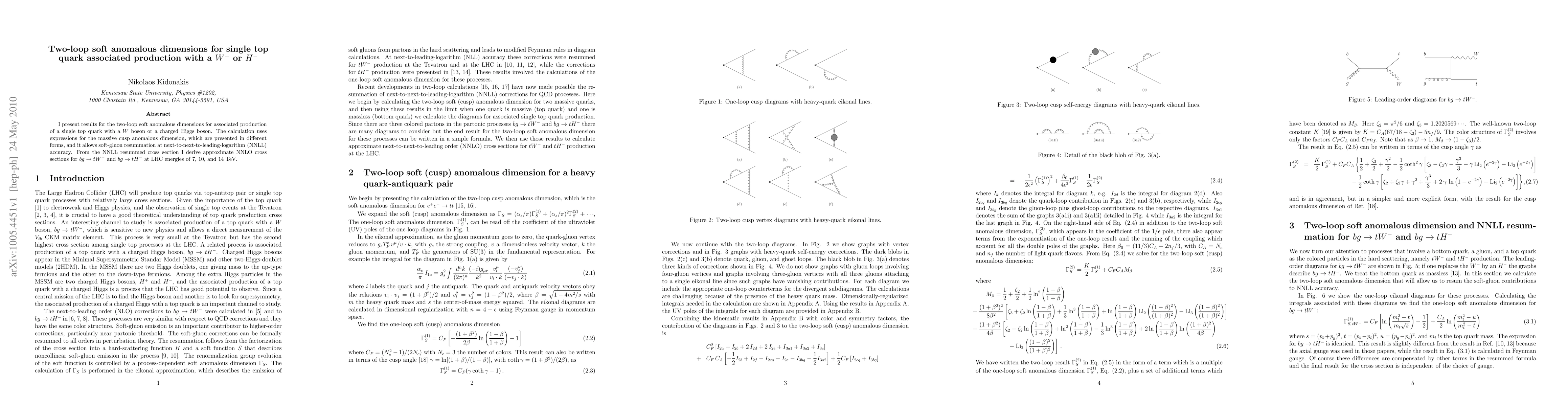 I present results for the two-loop soft anomalous dimensions for associated production of a single top quark with a W boson or a charged Higgs boson. The calculation uses expressions for the massive cusp anomalous dimension, which are presented in different forms, and it allows soft-gluon resummation at next-to-next-to-leading-logarithm (NNLL) accuracy. From the NNLL resummed cross section I derive approximate NNLO cross sections for bg -> tW- and bg -> tH- at LHC energies of 7, 10, and 14 TeV.
