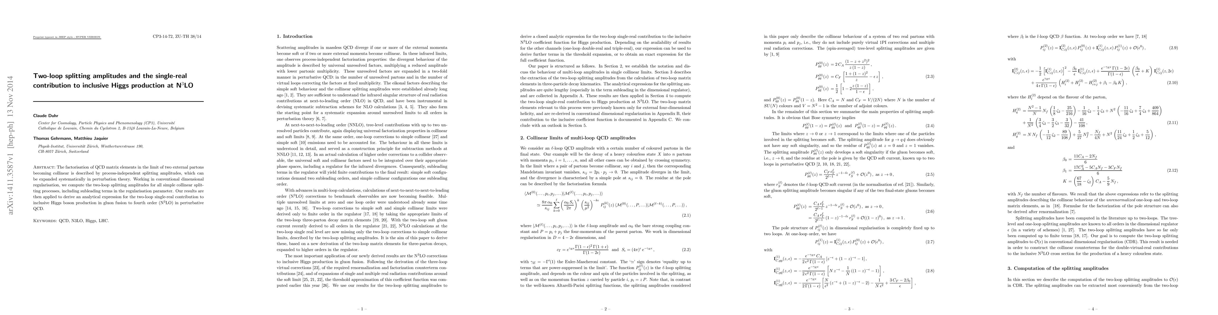 This paper computes the two-loop splitting amplitudes for simple collinear splitting processes, which are used to derive the two-loop single-real contribution to inclusive Higgs boson production at N3LO in perturbative QCD. The results provide a significant enhancement to the precision of Higgs production calculations.