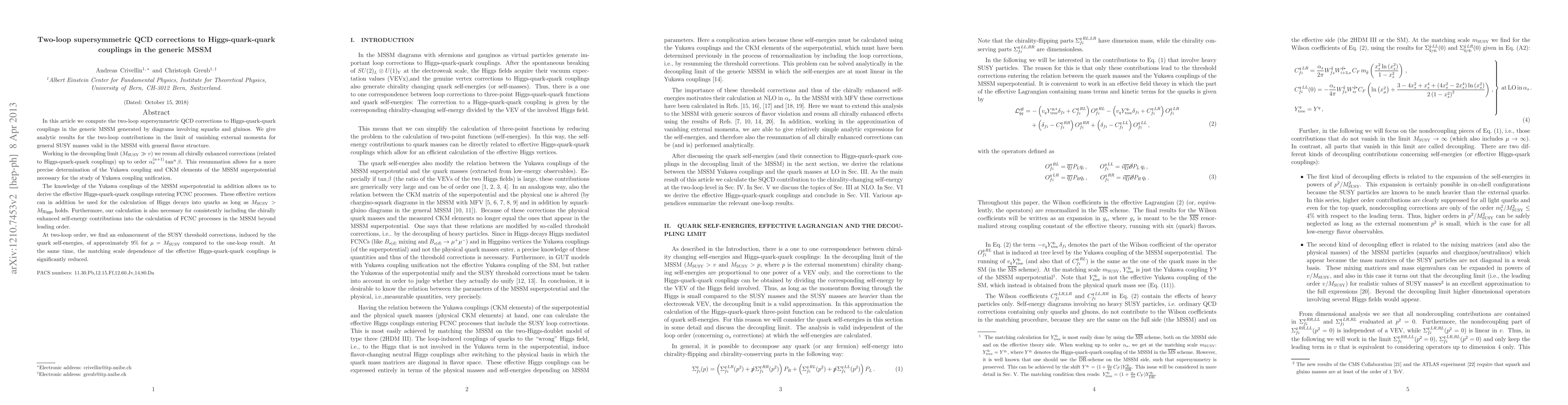 This paper computes two-loop SQCD corrections to Higgs-quark-quark couplings in the generic MSSM, providing analytic results for these contributions in the limit of vanishing external momenta. The study also resums chirally enhanced corrections, improving the precision of Yukawa coupling determinations and facilitating the analysis of FCNC processes and Higgs decays into quarks.