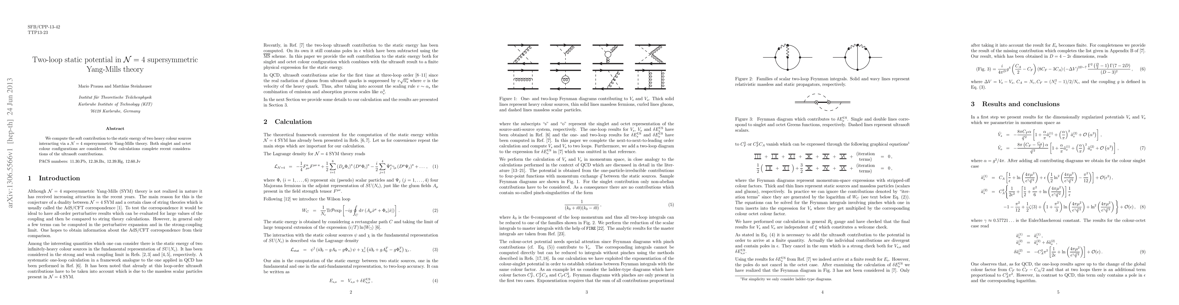 Summary: This paper computes the soft contribution to the static potential between two heavy colour sources in N=4 supersymmetric Yang-Mills theory, examining both singlet and octet configurations to complement recent studies on ultrasoft contributions.