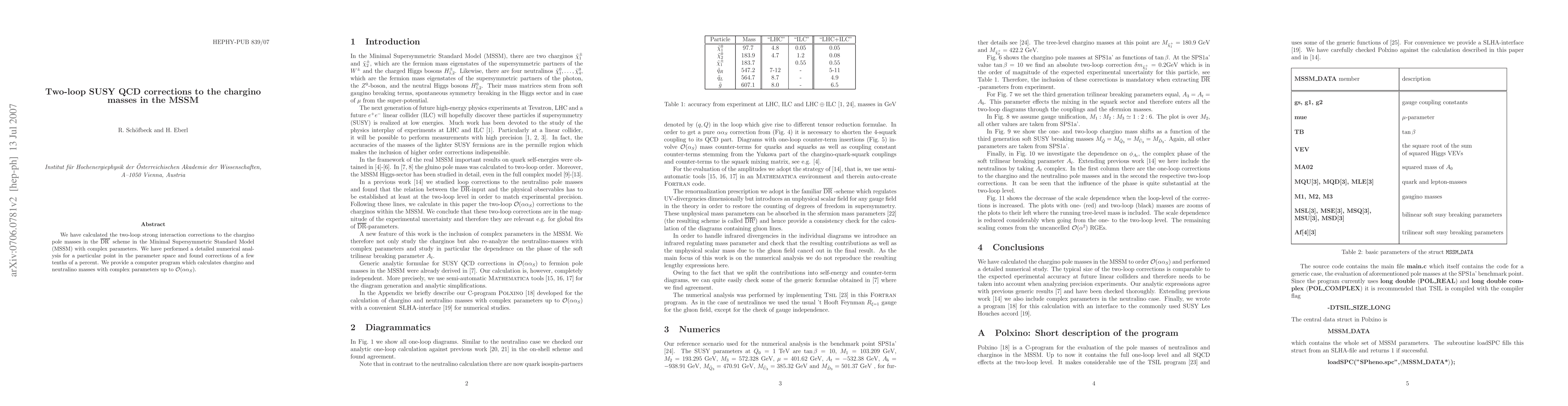 This paper calculates two-loop strong interaction corrections to chargino masses in the MSSM, finding corrections of a few tenths of a percent. It also provides a computer program for calculating chargino and neutralino masses including one-loop corrections and two-loop SUSY QCD effects.