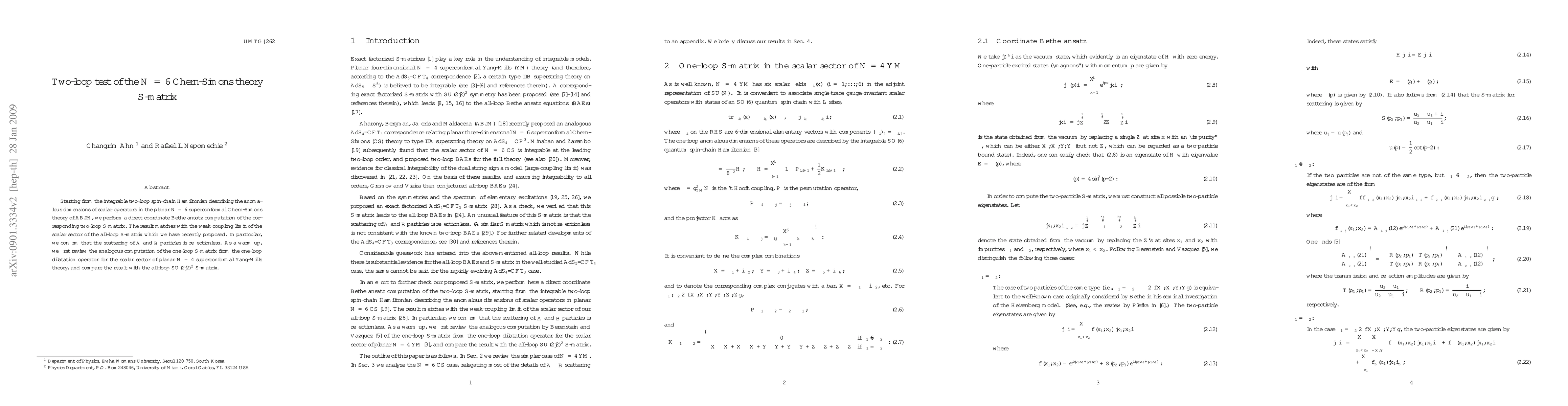 This paper computes the two-loop S-matrix for the N=6 Chern-Simons theory using a coordinate Bethe ansatz and confirms its agreement with the weak-coupling limit of a previously proposed all-loop S-matrix. It also reviews the one-loop S-matrix computation for N=4 superconformal Yang-Mills theory for comparison.