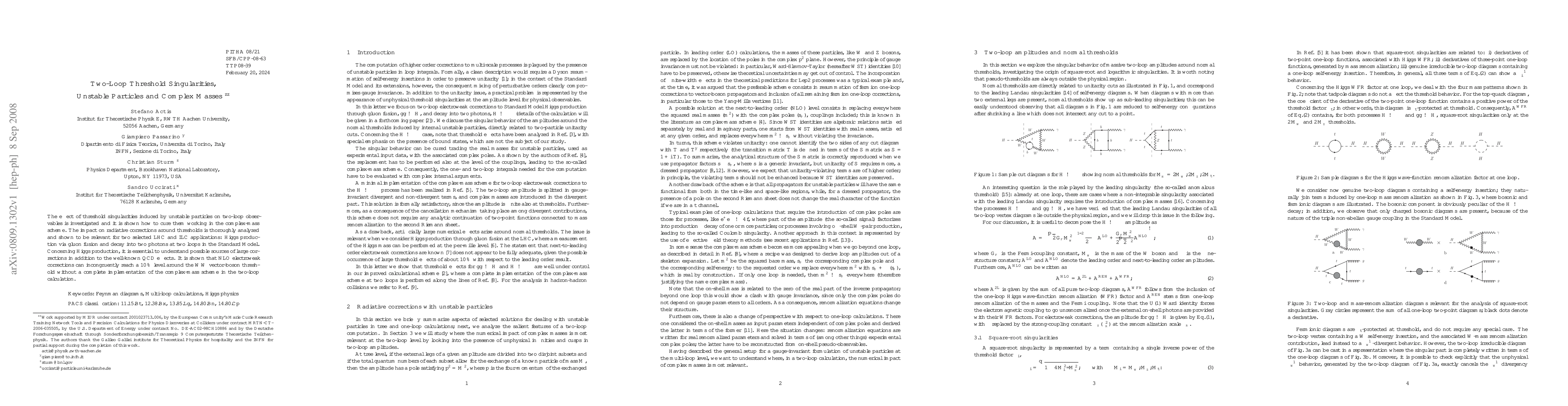 The effect of threshold singularities induced by unstable particles on two-loop observables is investigated and it is shown how to cure them working in the complex-mass scheme. The impact on radiative corrections around thresholds is thoroughly analyzed and shown to be relevant for two selected LHC and ILC applications: Higgs production via gluon fusion and decay into two photons at two loops in the Standard Model. Concerning Higgs production, it is essential to understand possible sources of large corrections in addition to the well-known QCD effects. It is shown that NLO electroweak corrections can incongruently reach a 10 % level around the WW vector-boson threshold without a complete implementation of the complex-mass scheme in the two-loop calculation.