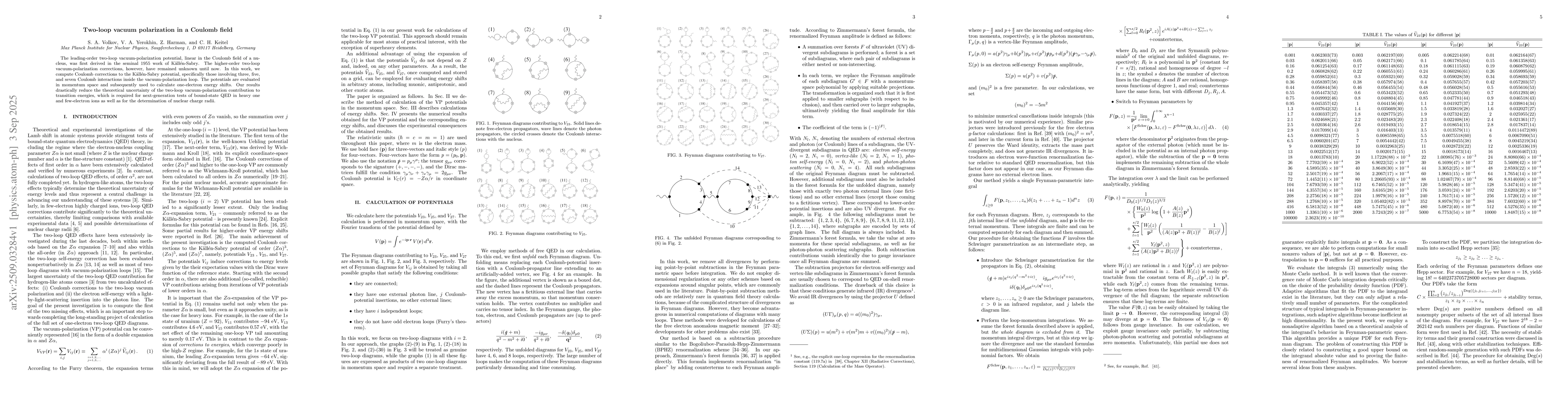 The leading-order two-loop vacuum-polarization potential, linear in the Coulomb field of a nucleus, was first derived in the seminal 1955 work of K\"all\'en-Sabry. The higher-order two-loop vacuum-polarization corrections, however, have remained unknown until now. In this work, we compute Coulomb corrections to the K\"all\'en-Sabry potential, specifically those involving three, five, and seven Coulomb interactions inside the vacuum-polarization loop. The potentials are evaluated in momentum space and subsequently used to calculate one-electron energy shifts. Our results drastically reduce the theoretical uncertainty of the two-loop vacuum-polarization contribution to transition energies, which is required for next-generation tests of bound-state QED in heavy one and few-electron ions as well as for the determination of nuclear charge radii.