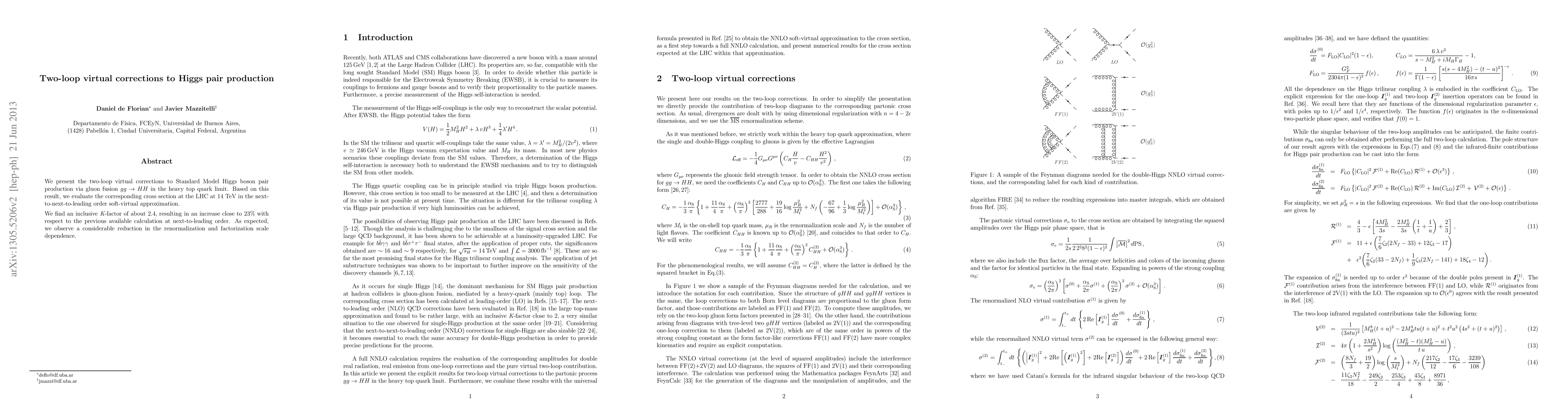 This paper calculates the two-loop virtual corrections to Higgs pair production via gluon fusion in the heavy top quark limit, finding a K-factor of 2.4 that increases the cross section by nearly 23% compared to next-to-leading order calculations, while also reducing scale dependence.