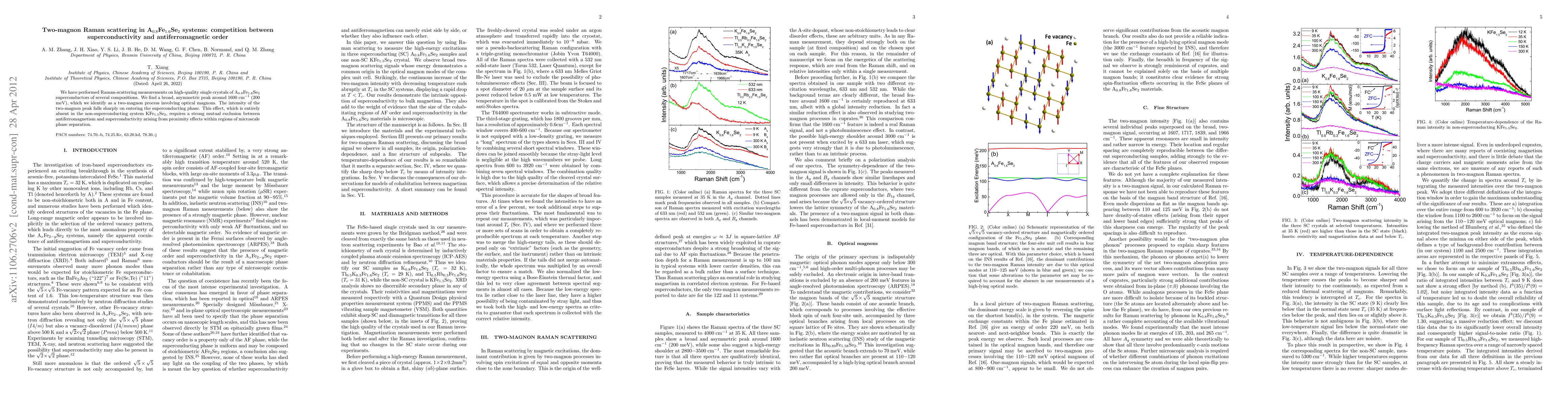 We have performed Raman-scattering measurements on high-quality single crystals of A$_{0.8}$Fe$_{1.6}$Se$_2$ superconductors of several compositions. We find a broad, asymmetric peak around 1600 cm$^{-1}$ (200 meV), which we identify as a two-magnon process involving optical magnons. The intensity of the two-magnon peak falls sharply on entering the superconducting phase. This effect, which is entirely absent in the non-superconducting system KFe$_{1.5}$Se$_2$, requires a strong mutual exclusion between antiferromagnetism and superconductivity arising from proximity effects within regions of microscale phase separation.