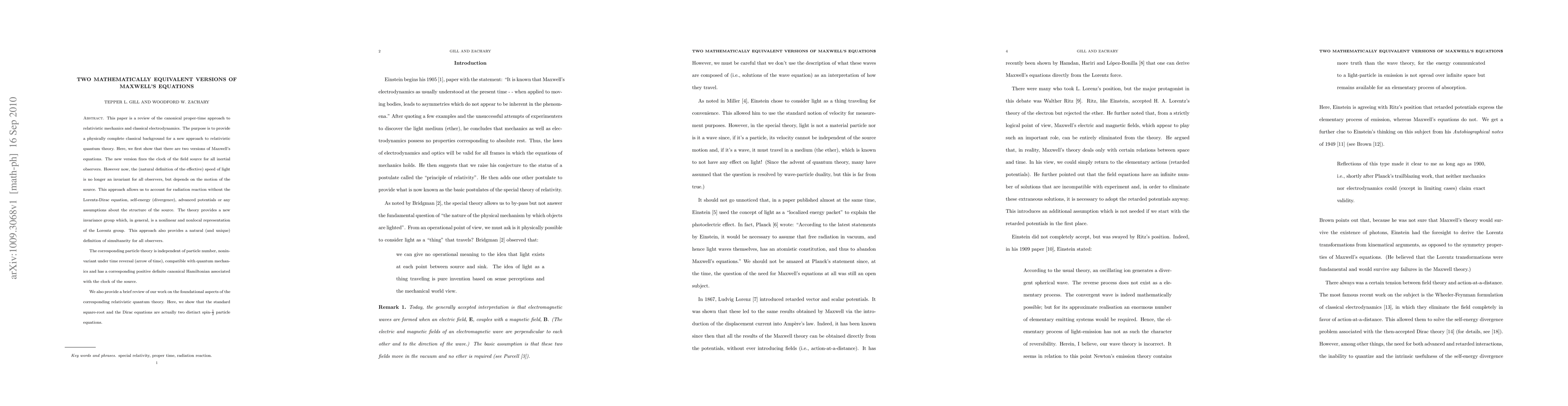 This paper is a review of the canonical proper-time approach to relativistic mechanics and classical electrodynamics. The purpose is to provide a physically complete classical background for a new approach to relativistic quantum theory. Here, we first show that there are two versions of Maxwell's equations. The new version fixes the clock of the field source for all inertial observers. However now, the (natural definition of the effective) speed of light is no longer an invariant for all observers, but depends on the motion of the source. This approach allows us to account for radiation reaction without the Lorentz-Dirac equation, self-energy (divergence), advanced potentials or any assumptions about the structure of the source. The theory provides a new invariance group which, in general, is a nonlinear and nonlocal representation of the Lorentz group. This approach also provides a natural (and unique) definition of simultaneity for all observers. The corresponding particle theory is independent of particle number, noninvariant under time reversal (arrow of time), compatible with quantum mechanics and has a corresponding positive definite canonical Hamiltonian associated with the clock of the source. We also provide a brief review of our work on the foundational aspects of the corresponding relativistic quantum theory. Here, we show that the standard square-root and the Dirac equations are actually two distinct spin-$\tfrac{1}{2}$ particle equations.