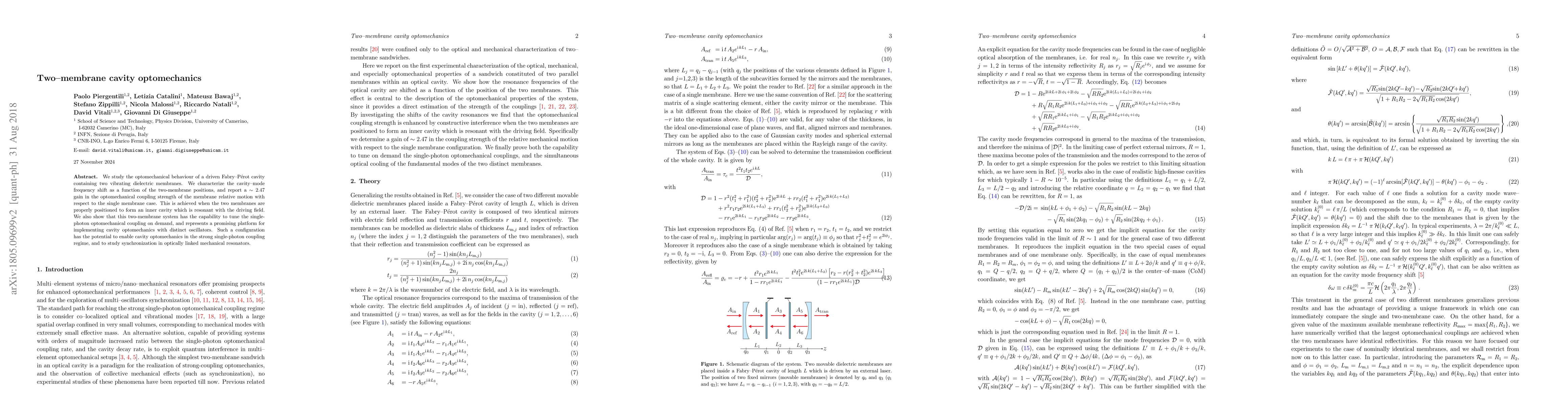 This paper investigates the optomechanical behavior of a driven Fabry-Pérot cavity with two vibrating dielectric membranes, achieving a $\sim 2.47$ gain in coupling strength when the membranes form a resonant inner cavity. The system offers tunable single-photon optomechanical coupling and holds promise for strong coupling and synchronization studies in cavity optomechanics.