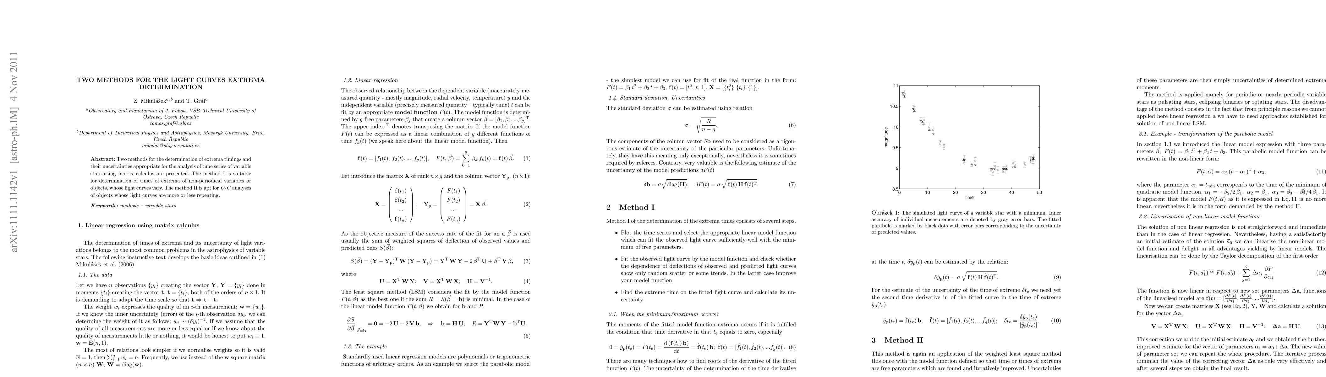 This paper introduces two methods for identifying extrema in variable star light curves using matrix calculus. Method I is for non-periodic variables, while Method II is for objects with repeating light curve patterns, aiding in time series analysis and O-C diagram construction.