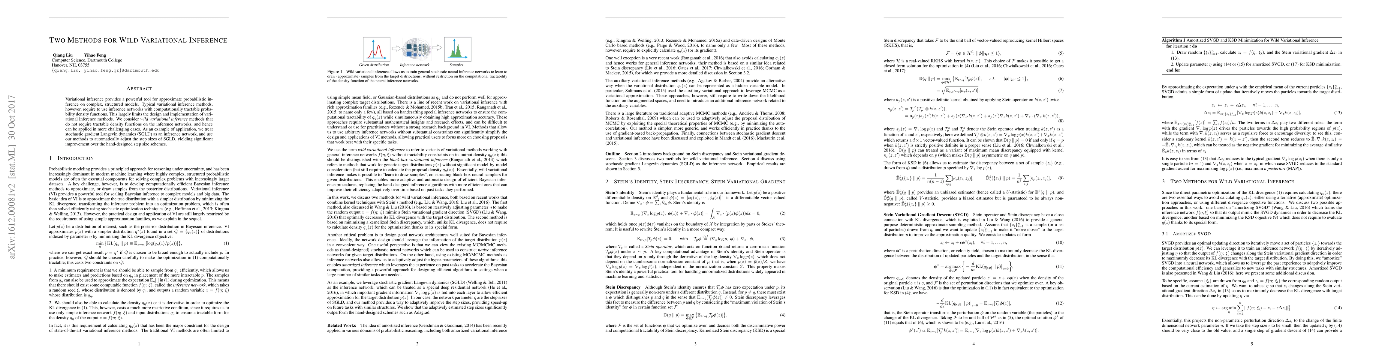 This paper proposes two novel methods for wild variational inference that do not rely on computationally tractable probability density functions, allowing application to more complex models. It demonstrates the effectiveness of these methods by automatically adjusting the step sizes of stochastic gradient Langevin dynamics, significantly improving performance over traditional methods.
