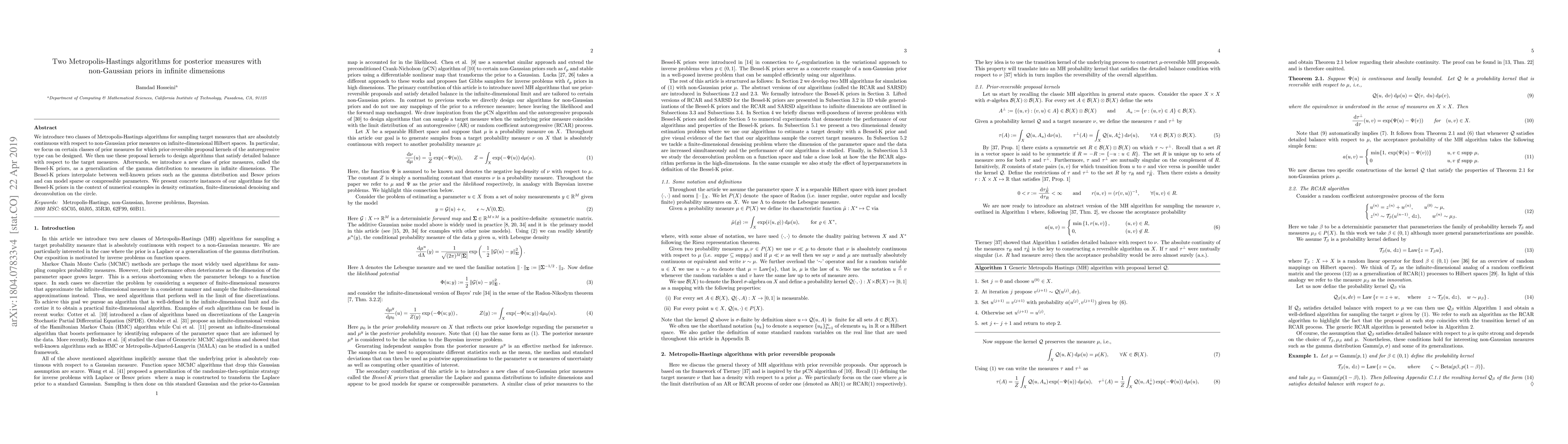 This paper introduces two Metropolis-Hastings algorithms for sampling non-Gaussian priors in infinite dimensions, focusing on autoregressive proposal kernels that maintain detailed balance. It also presents a new class of Bessel-K priors, generalizing the gamma distribution, and applies the algorithms to density estimation and denoising tasks.