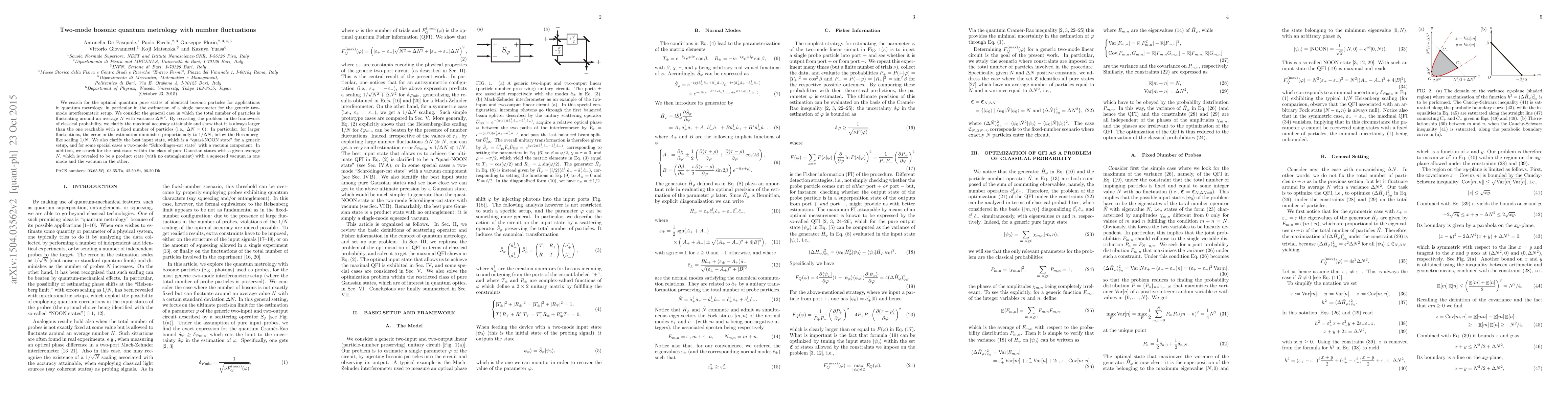 This paper investigates optimal quantum states for bosonic particles in quantum metrology, particularly focusing on two-mode interferometric setups with fluctuating particle numbers. It demonstrates that fluctuating number states achieve higher accuracy than fixed number states, with error scaling inversely proportional to the number fluctuations. The best input state is identified as a "quasi-NOON state" or a "Schrödinger-cat state" depending on the setup.