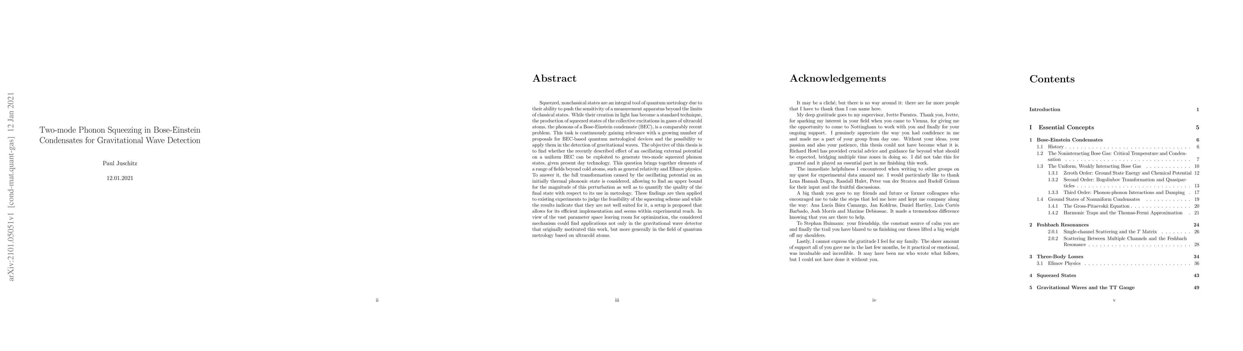 Researchers investigate creating two-mode phonon squeezing in Bose-Einstein condensates for gravitational wave detection, exploring the feasibility of a proposed setup to achieve this.
