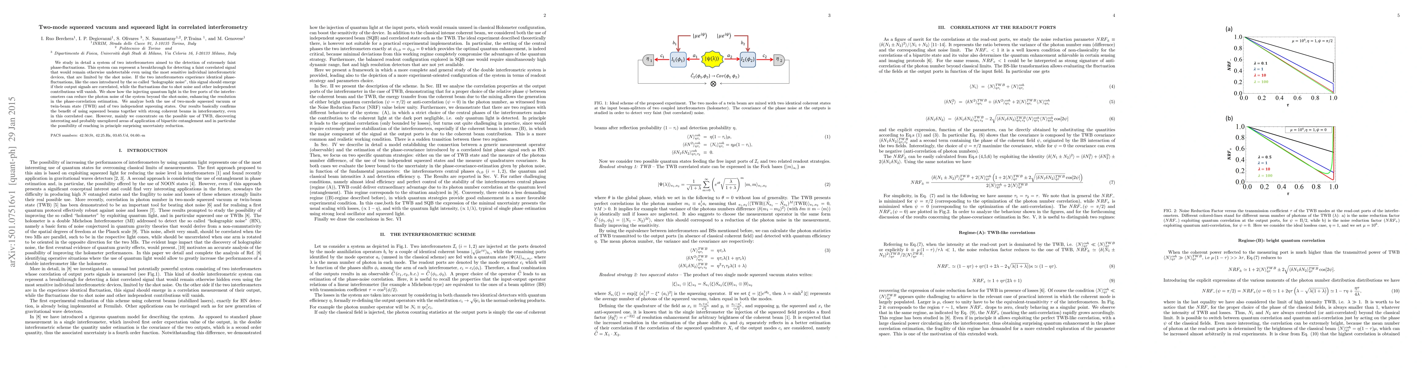 We study in detail a system of two interferometers aimed to the detection of extremely faint phase-fluctuations. This system can represent a breakthrough for detecting a faint correlated signal that would remain otherwise undetectable even using the most sensitive individual interferometric devices, that are limited by the shot noise. If the two interferometers experience identical phase-fluctuations, like the ones introduced by the so called "holographic noise", this signal should emerge if their output signals are correlated, while the fluctuations due to shot noise and other independent contributions will vanish. We show how the injecting quantum light in the free ports of the interferometers can reduce the photon noise of the system beyond the shot-noise, enhancing the resolution in the phase-correlation estimation. We analyze both the use of two-mode squeezed vacuum or twin-beam state (TWB) and of two independent squeezing states. Our results basically confirms the benefit of using squeezed beams together with strong coherent beams in interferometry, even in this correlated case. However, mainly we concentrate on the possible use of TWB, discovering interesting and probably unexplored areas of application of bipartite entanglement and in particular the possibility of reaching in principle surprising uncertainty reduction.