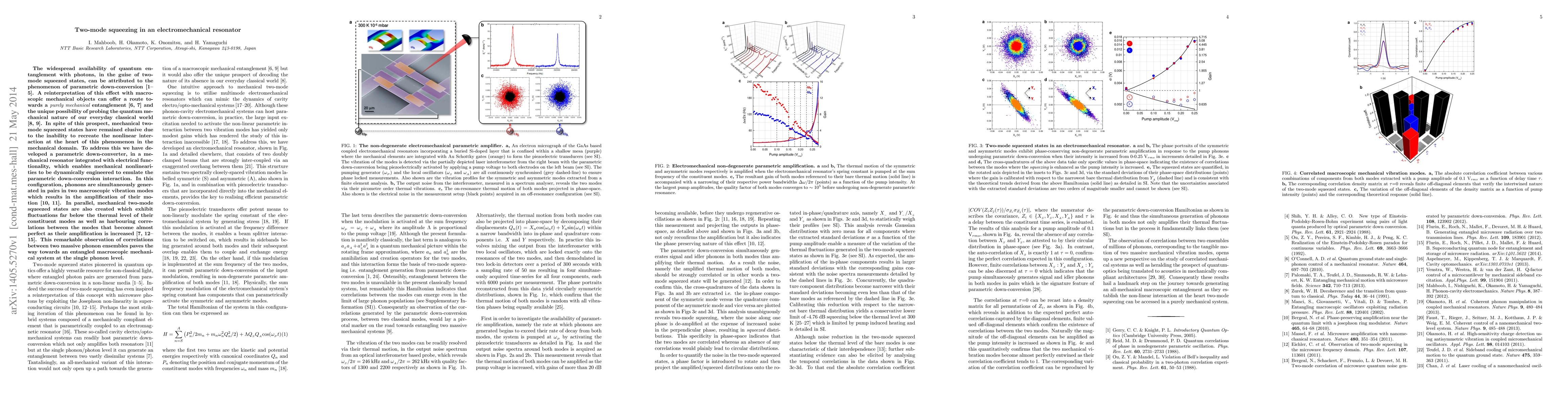 This paper reports the creation of mechanical two-mode squeezed states in an electromechanical resonator, achieving phonon pair generation and significant reduction in fluctuations below thermal levels. This breakthrough paves the way for exploring entangled macroscopic mechanical systems at the single phonon level.