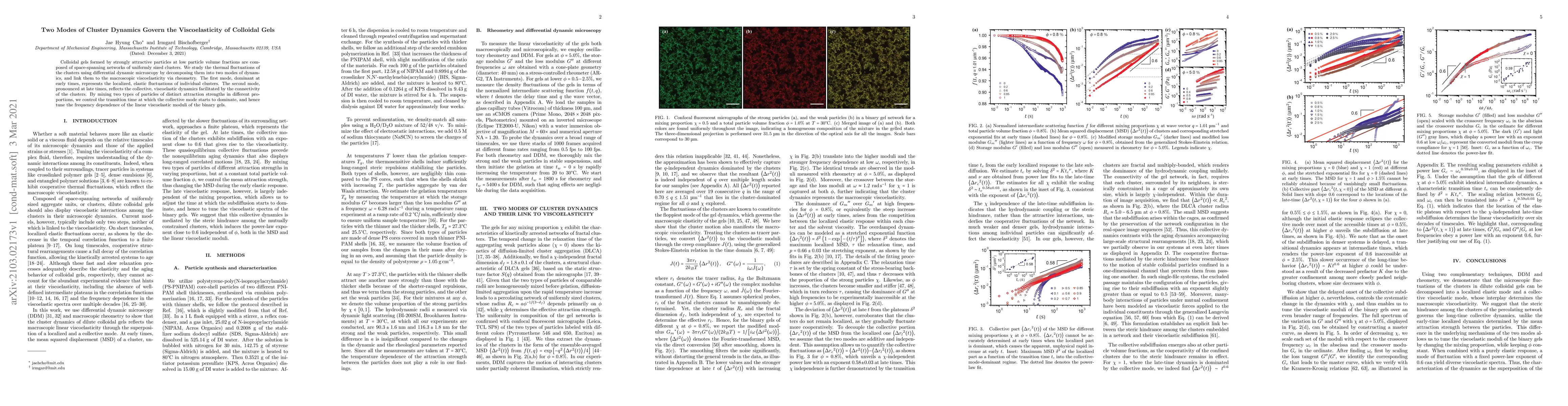 Colloidal gels formed by strongly attractive particles at low particle volume fractions are composed of space-spanning networks of uniformly sized clusters. We study the thermal fluctuations of the clusters using differential dynamic microscopy by decomposing them into two modes of dynamics, and link them to the macroscopic viscoelasticity via rheometry. The first mode, dominant at early times, represents the localized, elastic fluctuations of individual clusters. The second mode, pronounced at late times, reflects the collective, viscoelastic dynamics facilitated by the connectivity of the clusters. By mixing two types of particles of distinct attraction strengths in different proportions, we control the transition time at which the collective mode starts to dominate, and hence tune the frequency dependence of the linear viscoelastic moduli of the binary gels.