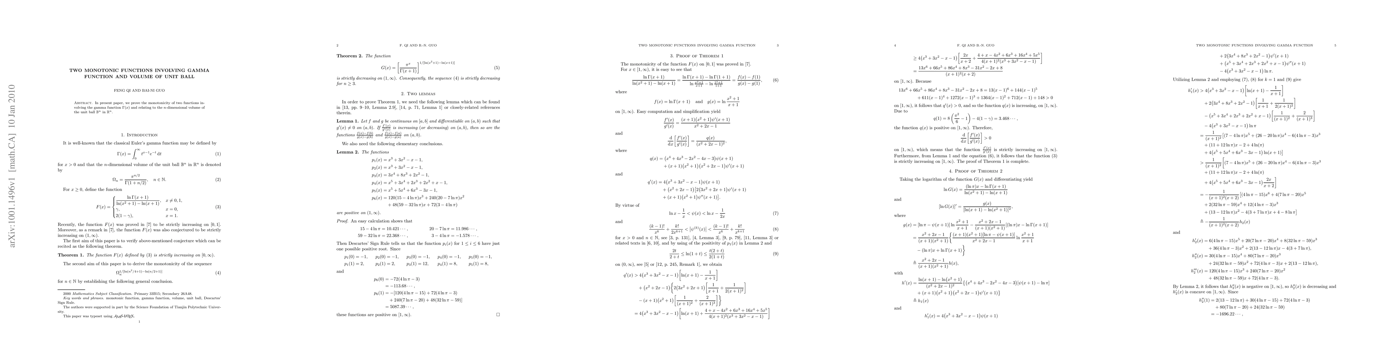 Summary: This paper establishes the monotonicity of two functions that incorporate the gamma function $\Gamma(x)$ and are connected to the $n$-dimensional volume of the unit ball $\mathbb{B}^n$ in $\mathbb{R}^n$. The results provide insights into the behavior of these functions.