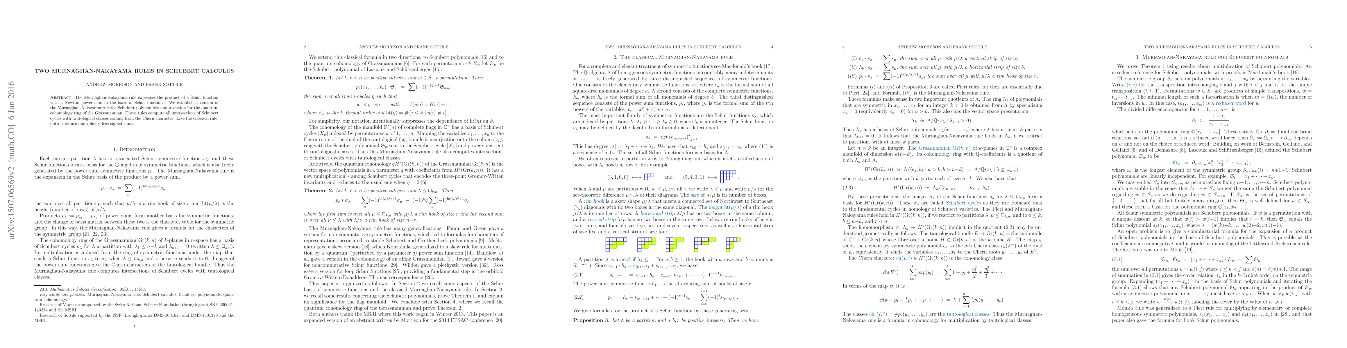 The paper establishes two Murnaghan-Nakayama rules: one for Schubert polynomials and another for the quantum cohomology ring of the Grassmannian, both computing intersections of Schubert cycles with tautological classes.