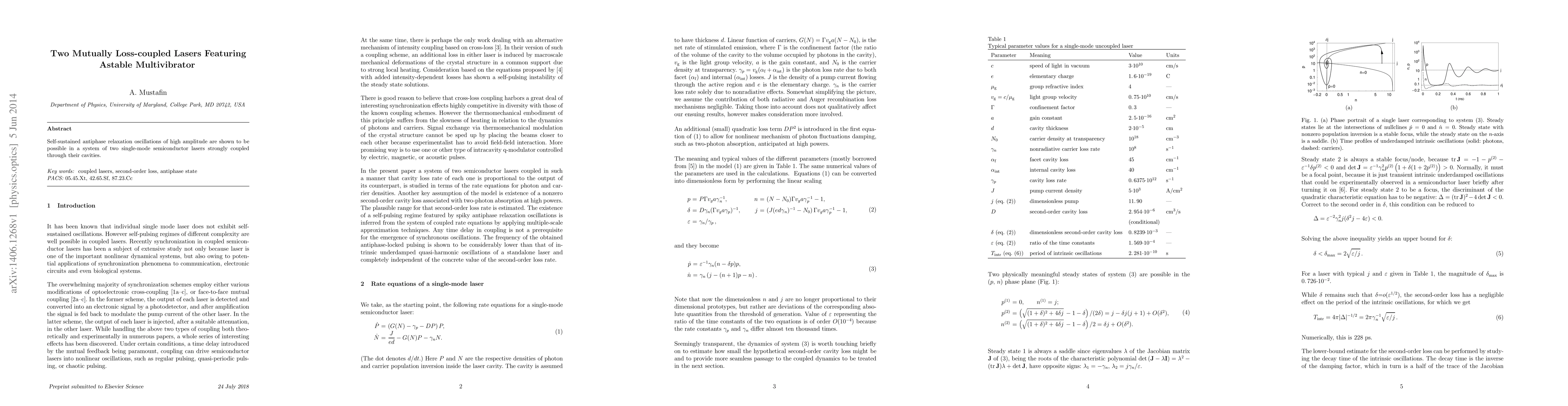 Self-sustained antiphase relaxation oscillations of high amplitude are shown to be possible in a system of two single-mode semiconductor lasers strongly coupled through their cavities.