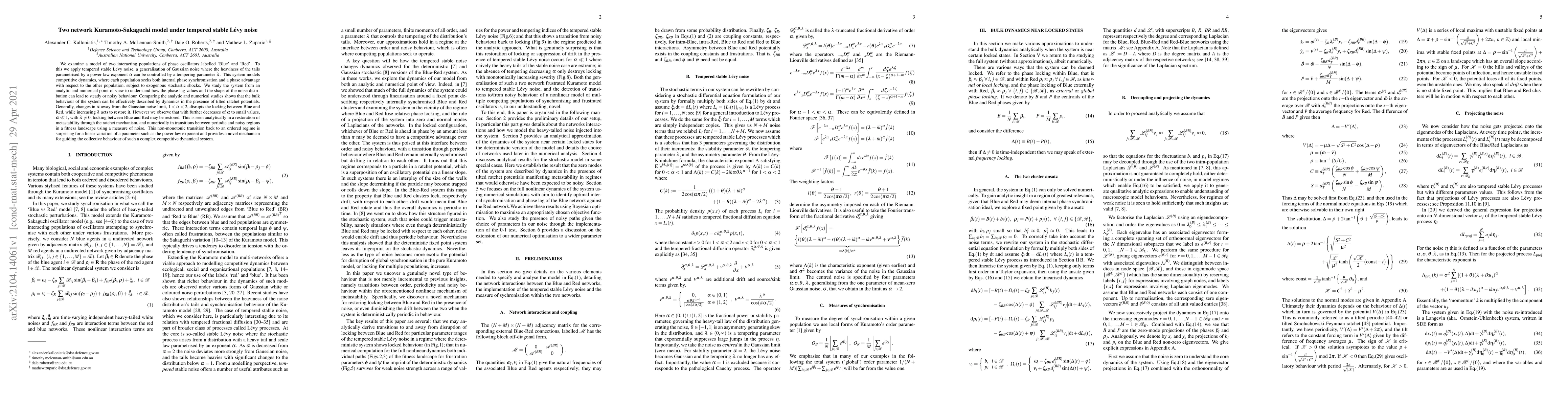 We examine a model of two interacting populations of phase oscillators labelled `Blue' and `Red'. To this we apply tempered stable L\'{e}vy noise, a generalisation of Gaussian noise where the heaviness of the tails parametrised by a power law exponent $\alpha$ can be controlled by a tempering parameter $\lambda$. This system models competitive dynamics, where each population seeks both internal phase synchronisation and a phase advantage with respect to the other population, subject to exogenous stochastic shocks. We study the system from an analytic and numerical point of view to understand how the phase lag values and the shape of the noise distribution can lead to steady or noisy behaviour. Comparing the analytic and numerical studies shows that the bulk behaviour of the system can be effectively described by dynamics in the presence of tilted ratchet potentials. Generally, changes in $\alpha$ away from the Gaussian noise limit, $1< \alpha < 2$, disrupts the locking between Blue and Red, while increasing $\lambda$ acts to restore it. However we observe that with further decreases of $\alpha$ to small values, $\alpha\ll 1$, with $\lambda\neq 0$, locking between Blue and Red may be restored. This is seen analytically in a restoration of metastability through the ratchet mechanism, and numerically in transitions between periodic and noisy regions in a fitness landscape using a measure of noise. This non-monotonic transition back to an ordered regime is surprising for a linear variation of a parameter such as the power law exponent and provides a novel mechanism for guiding the collective behaviour of such a complex competitive dynamical system.
