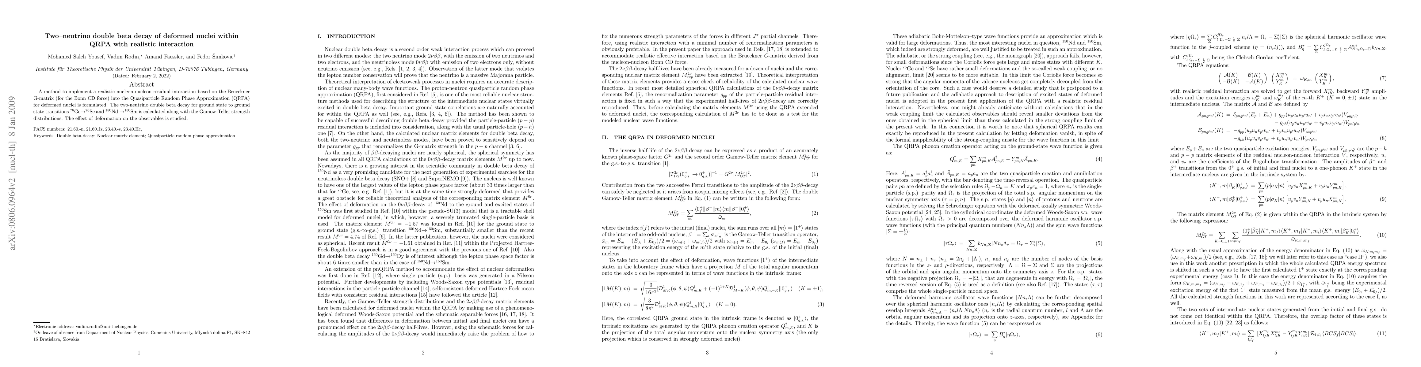 A method to implement realistic nucleon-nucleon residual interaction (Bonn CD force) based on the Brueckner G-matrix into the Quasiparticle Random Phase Approximation (QRPA) for deformed nuclei is formulated. The two-neutrino double decay for ground state to ground state transitions $^{76}$Ge$ \to ^{76}$Se and $^{150}$Nd $\to ^{150}$Sm is calculated along with the Gamow-Teller strength distributions. The effect of deformation on the observables is studied.