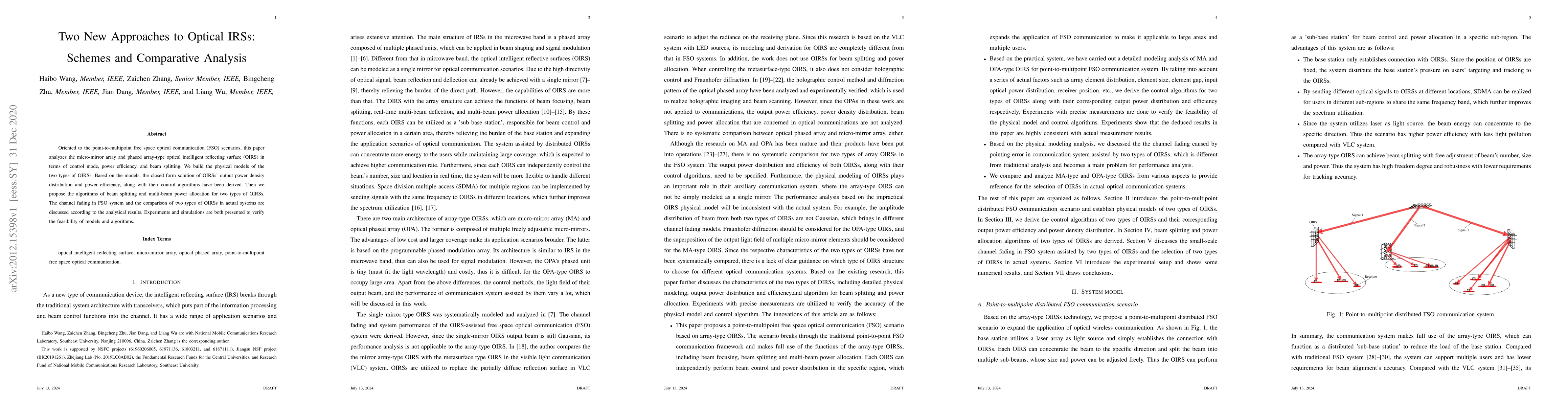 Oriented to the point-to-multipoint free space optical communication (FSO) scenarios, this paper analyzes the micro-mirror array and phased array-type optical intelligent reflecting surface (OIRS) in terms of control mode, power efficiency, and beam splitting. We build the physical models of the two types of OIRSs. Based on the models, the closed form solution of OIRSs' output power density distribution and power efficiency, along with their control algorithms have been derived. Then we propose the algorithms of beam splitting and multi-beam power allocation for two types of OIRSs. The channel fading in FSO system and the comparison of two types of OIRSs in actual systems are discussed according to the analytical results. Experiments and simulations are both presented to verify the feasibility of models and algorithms.