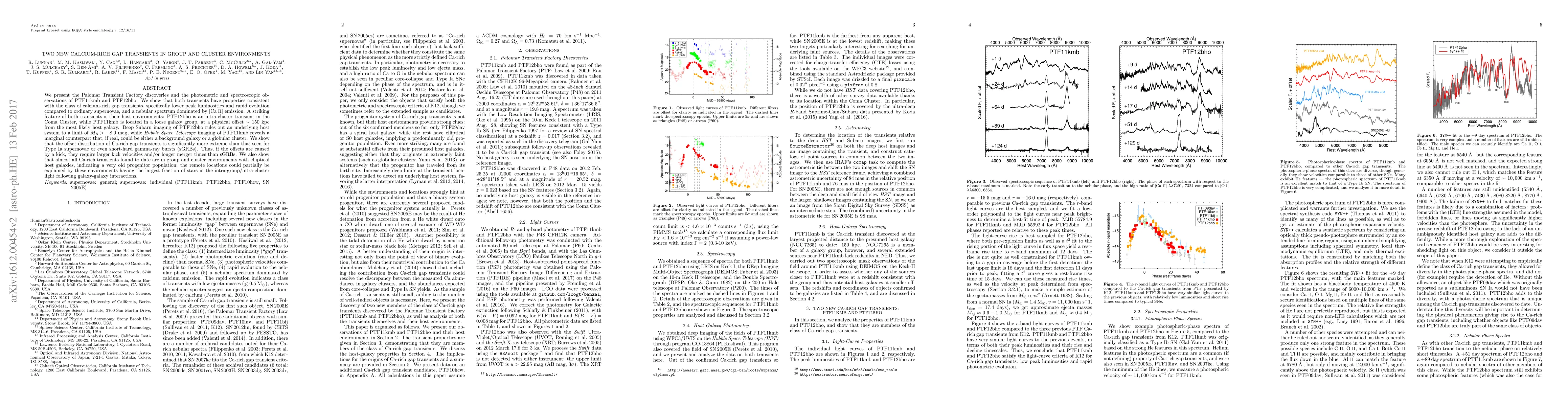 This paper reports two new calcium-rich gap transients, PTF11kmb and PTF12bho, with unique properties and host environments. PTF12bho is an intra-cluster transient in the Coma Cluster, while PTF11kmb is offset from its likely host galaxy in a galaxy group, suggesting larger kick velocities for these transients compared to other cosmic events.