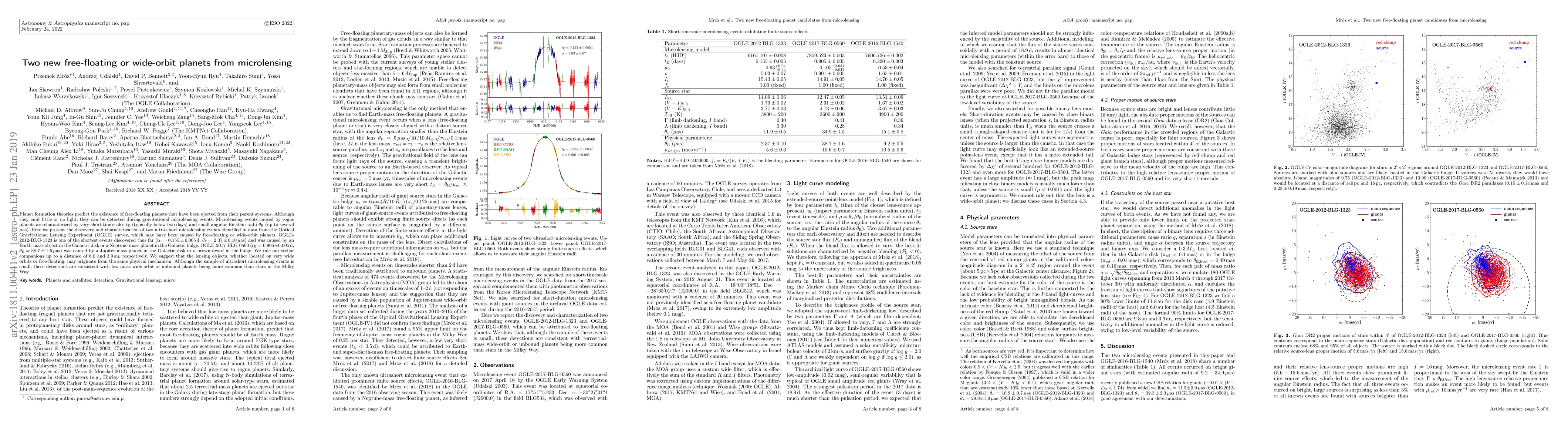 This paper reports the discovery of two free-floating or wide-orbit planets detected via ultra-short microlensing events from the OGLE survey. The events suggest an Earth-mass object or Neptune-mass planet for OGLE-2012-BLG-1323 and a Jupiter-mass planet or brown dwarf for OGLE-2017-BLG-0560, supporting the theory of common low-mass rogue planets in the Milky Way.
