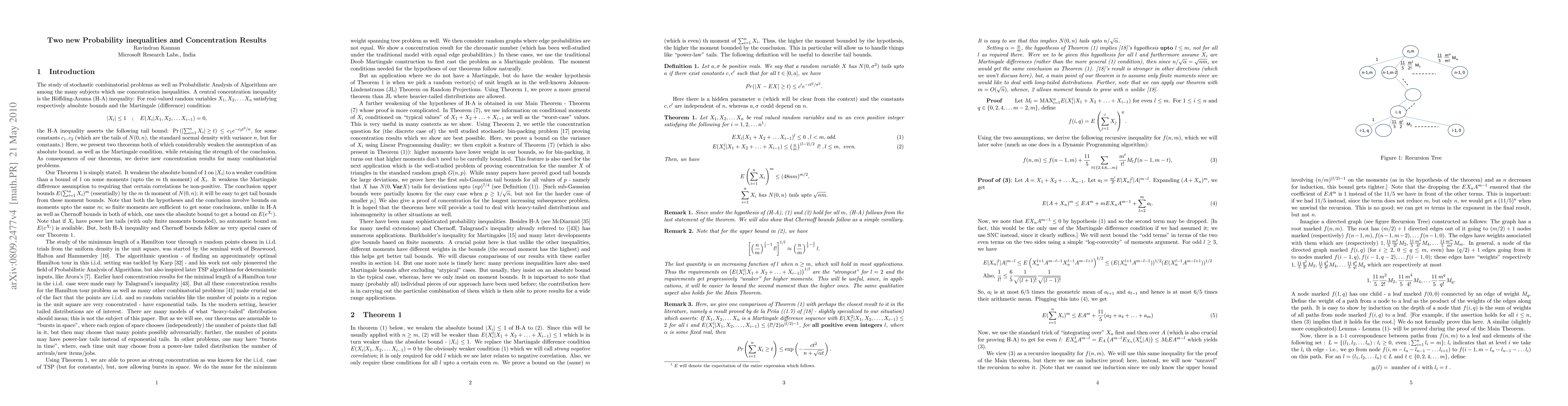 This paper proves two new probability inequalities that generalize and strengthen Martingale inequalities, providing tools for analyzing combinatorial problems under heavy-tailed and inhomogeneous distributions. The results extend to applications beyond TSP and MWST, including bin-packing, sub-graph counts, and the Johnson-Lindenstrauss theorem.
