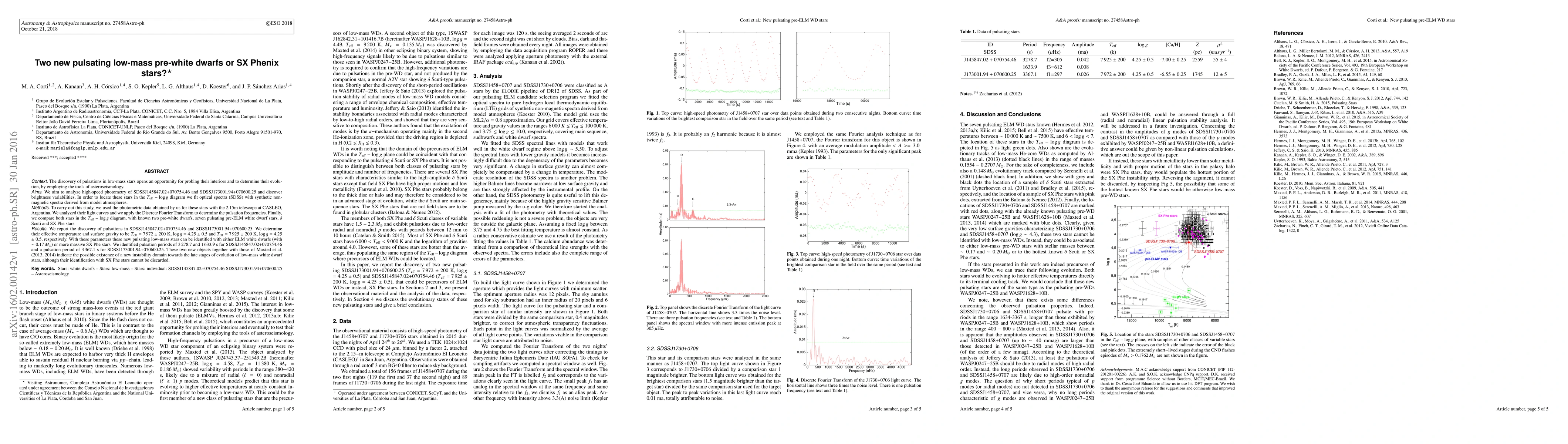 This paper reports the discovery of pulsations in two low-mass stars, SDSSJ145847.02+070754.46 and SDSSJ173001.94+070600.25, suggesting they may be either pre-white dwarfs or SX Phe stars, and proposes a new instability domain in the evolution of low-mass white dwarf stars.