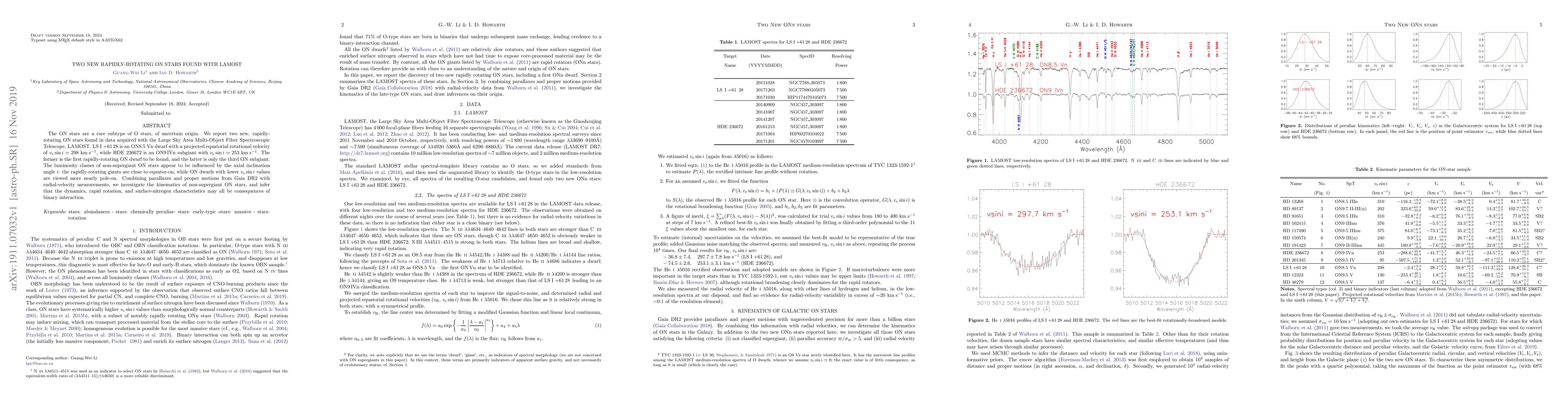 This paper reports the discovery of two new rapidly-rotating ON stars, LS I +61 28 and HDE 236672, using LAMOST data. The findings suggest that rapid rotation and surface nitrogen characteristics in ON stars may result from binary interactions.