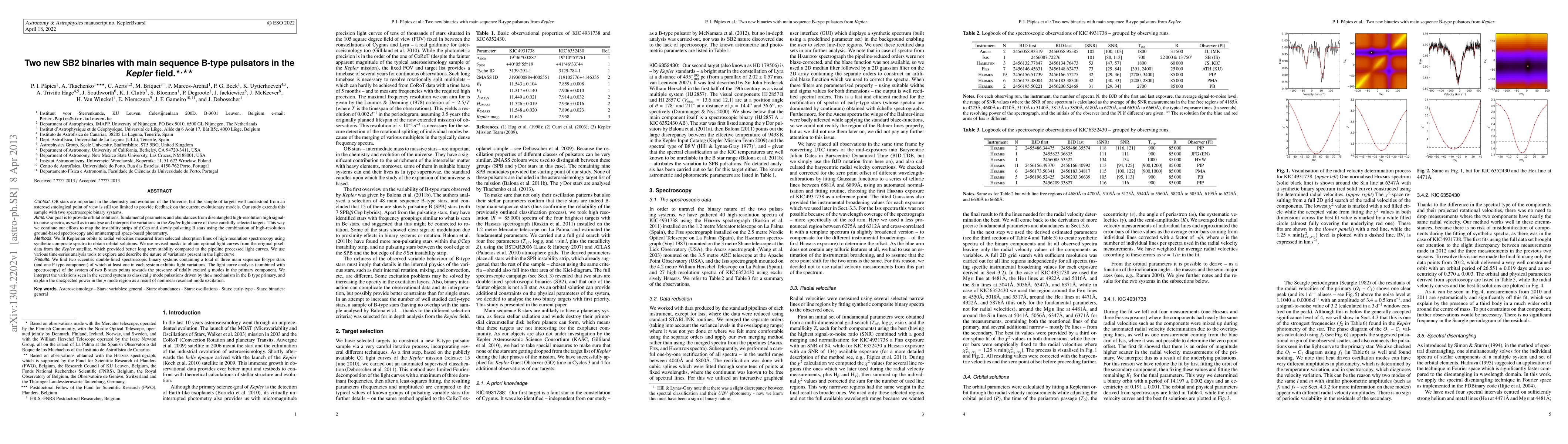 Context: OB stars are important in the chemistry and evolution of the Universe, but the sample of targets well understood from an asteroseismological point of view is still too limited to provide feedback on the current evolutionary models. Our study extends this sample with two spectroscopic binary systems. AIMS. Our goal is to provide orbital solutions, fundamental parameters and abundances from disentangled high-resolution high signal-to-noise spectra, as well as to analyse and interpret the variations in the Kepler light curve of these carefully selected targets. This way we continue our efforts to map the instability strips of beta Cep and SPB stars using the combination of high-resolution ground-based spectroscopy and uninterrupted space-based photometry. Methods: We fit Keplerian orbits to radial velocities measured from selected absorption lines of high-resolution spectroscopy using synthetic composite spectra to obtain orbital solutions. We use revised masks to obtain optimal light curves from the original pixel-data from the Kepler satellite, which provided better long term stability compared to the pipeline processed light curves. We use various time-series analysis tools to explore and describe the nature of variations present in the light curve. Results: We find two eccentric double-lined spectroscopic binary systems containing a total of three main sequence B-type stars (and one F-type component) of which at least one in each system exhibits light variations. The light curve analysis (combined with spectroscopy) of the system of two B stars points towards the presence of tidally excited g modes in the primary component. We interpret the variations seen in the second system as classical g mode pulsations driven by the kappa mechanism in the B type primary, and explain the unexpected power in the p mode region as a result of nonlinear resonant mode excitation.